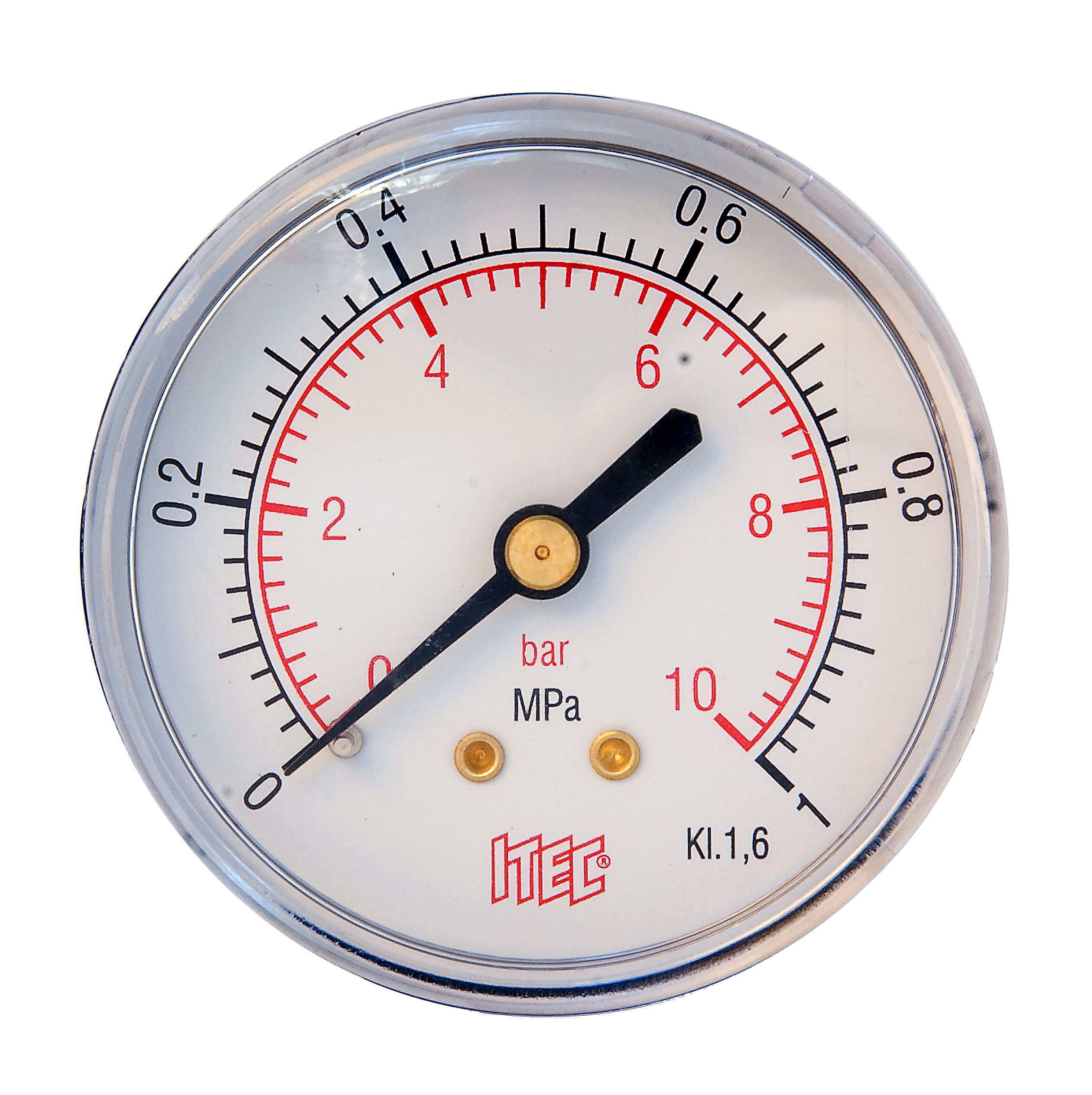 Tryckmätare 617.D DN63 0-16 bar anslutning bakåt, hus i plåt och anslutning i mässing.