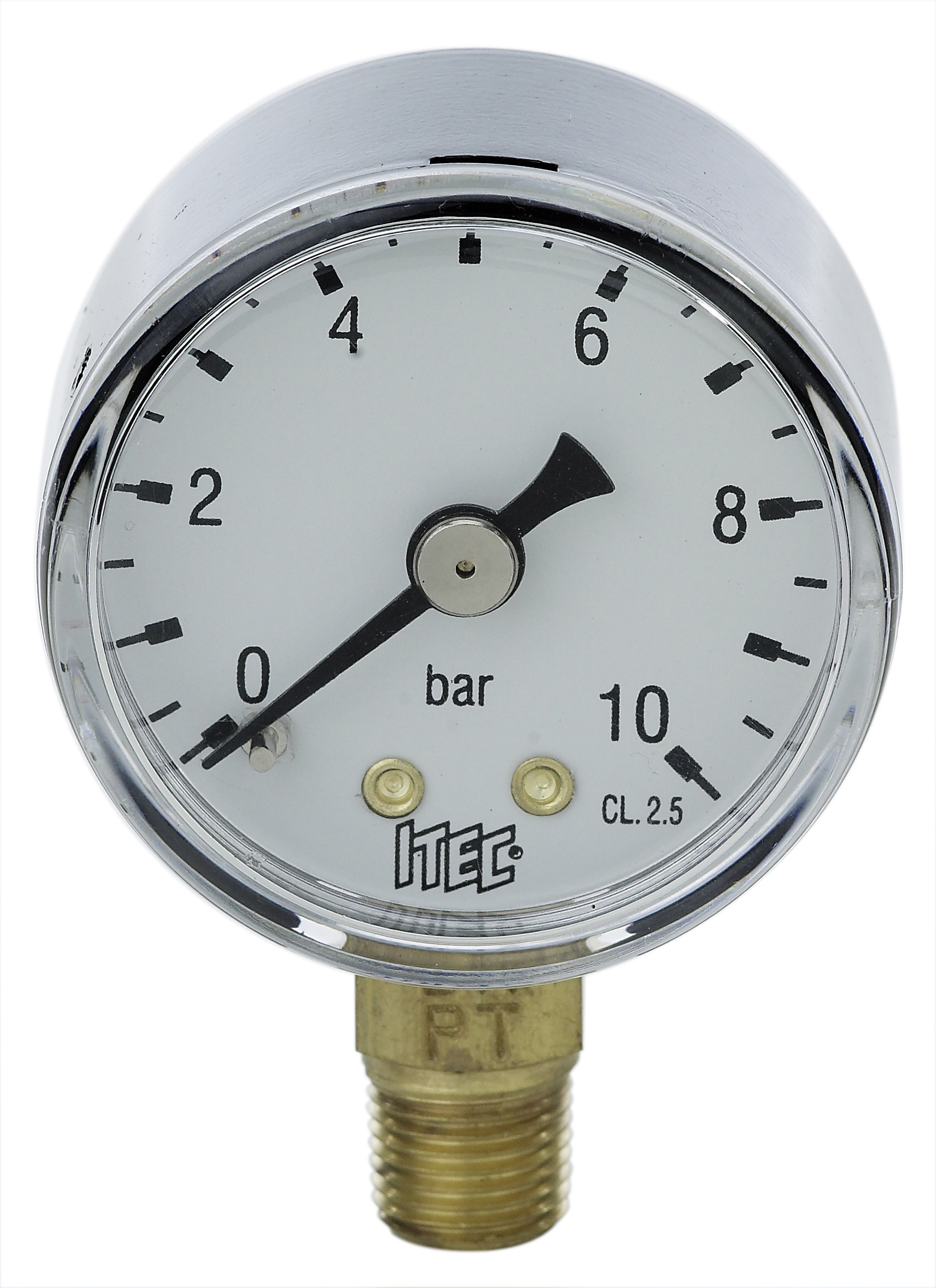 Tryckmätare 617.A DN40 0-16 bar anslutning nedåt, hus i plåt och anslutning i mässing.
