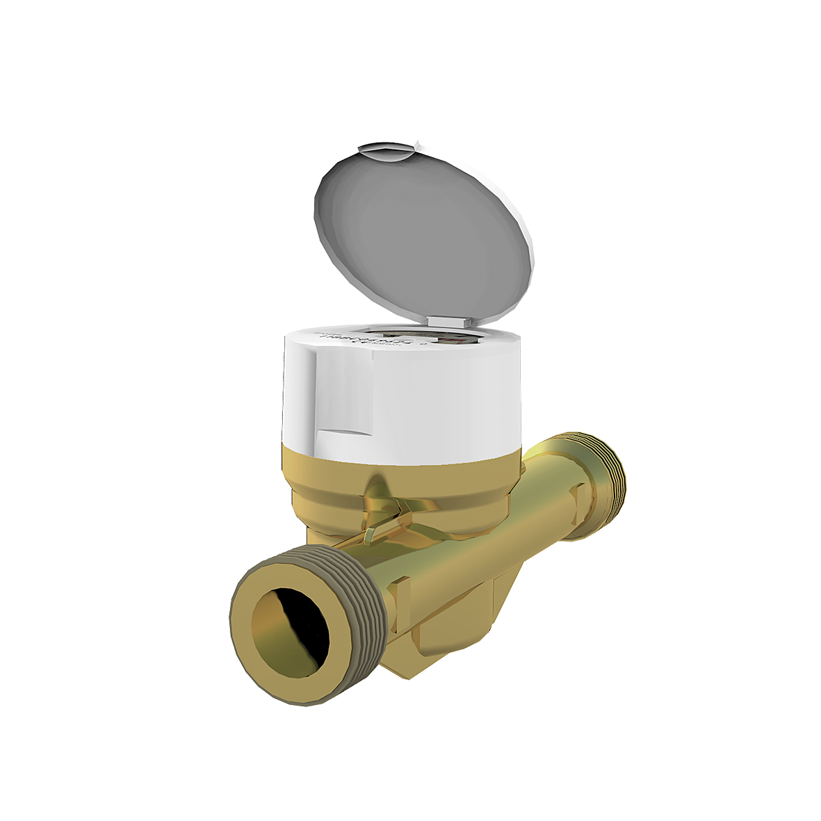 Vinghjulsmätare, enstrålig kallvattenmätare för horisontellt montage. Kan monteras vertikalt med minskad mätnoggrannhet. Förberedd för montering av fjärravläsningsmodul AT 7275CY-...