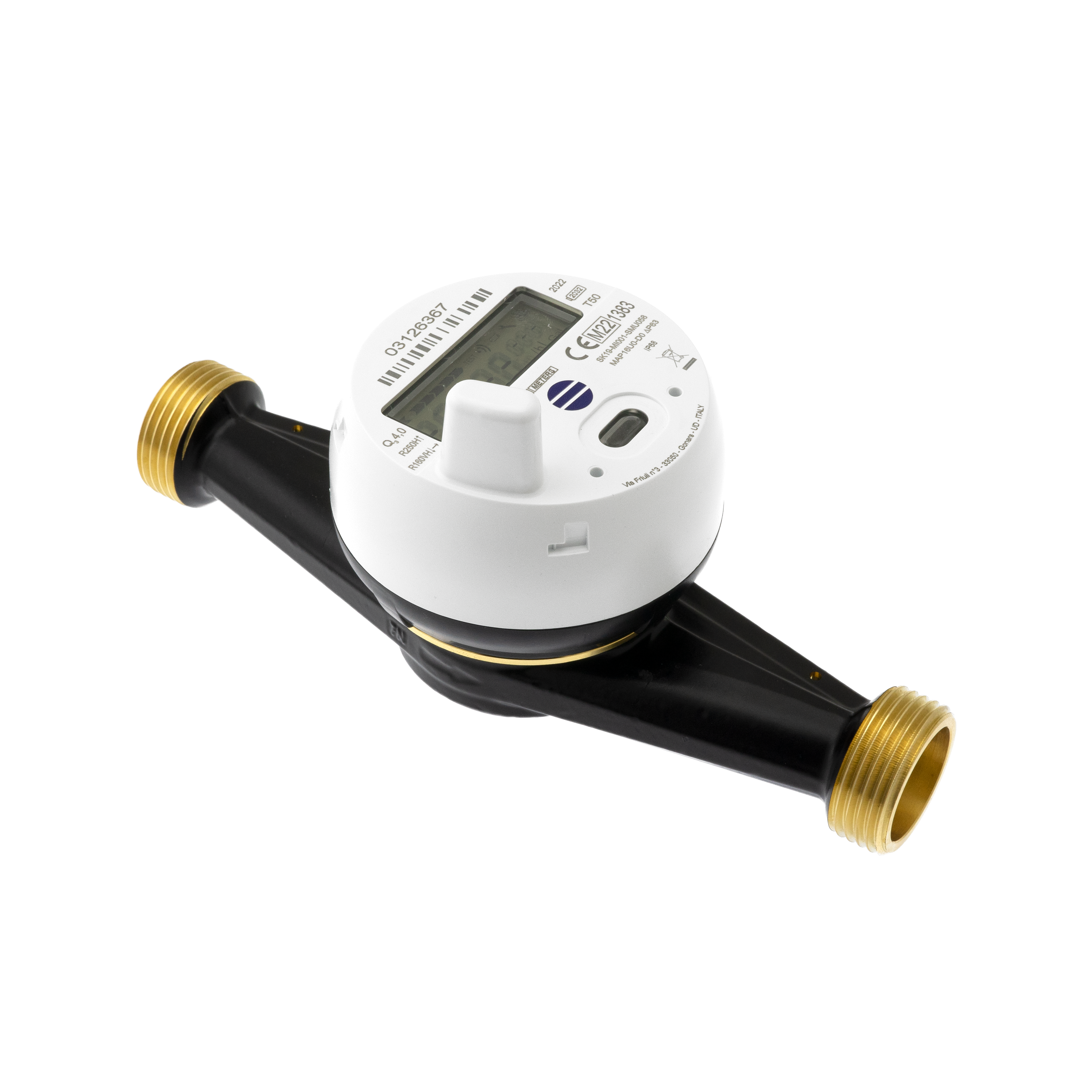 Semi-induktiv vattenmätare för kallt- eller varmtvatten med LCD display som visar stor mängd data. Trådlös LoRa WAN som sänder