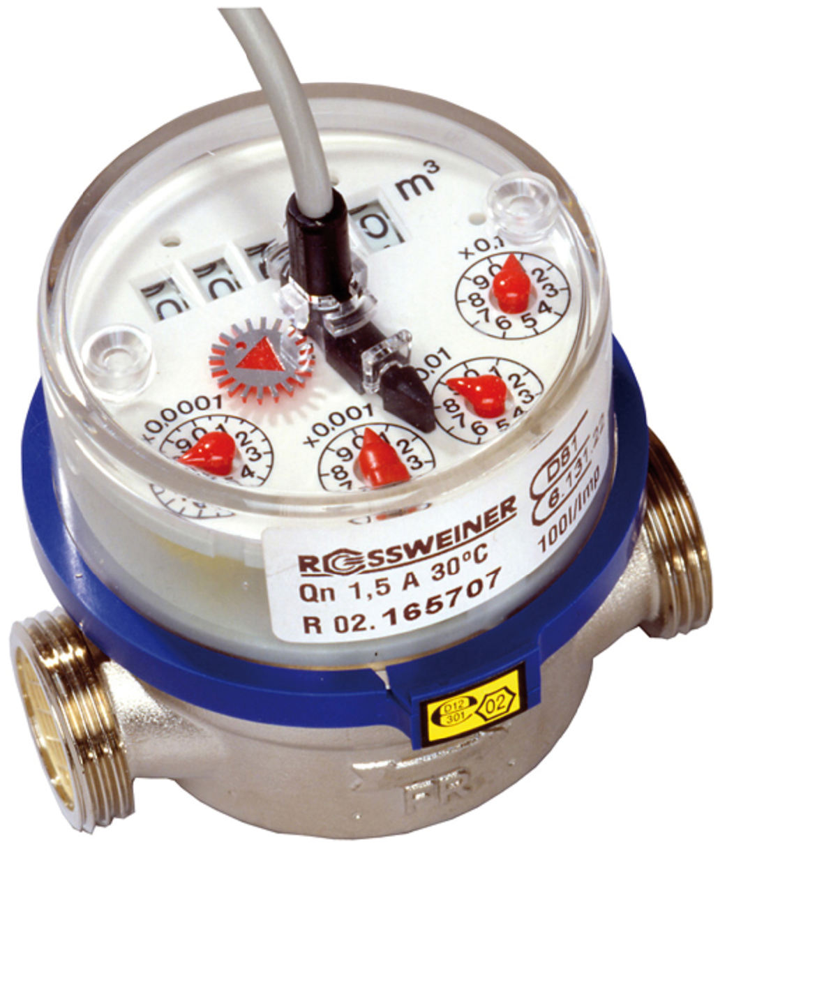 Rossweiner 684.2K Lägenhetsmätare med pulsgivare 10liter per puls kallvatten max 30°C Qn 1,5, Dn15/R20 torrlöpande bygglängd 110mm förkromade monteras liggande eller stående.