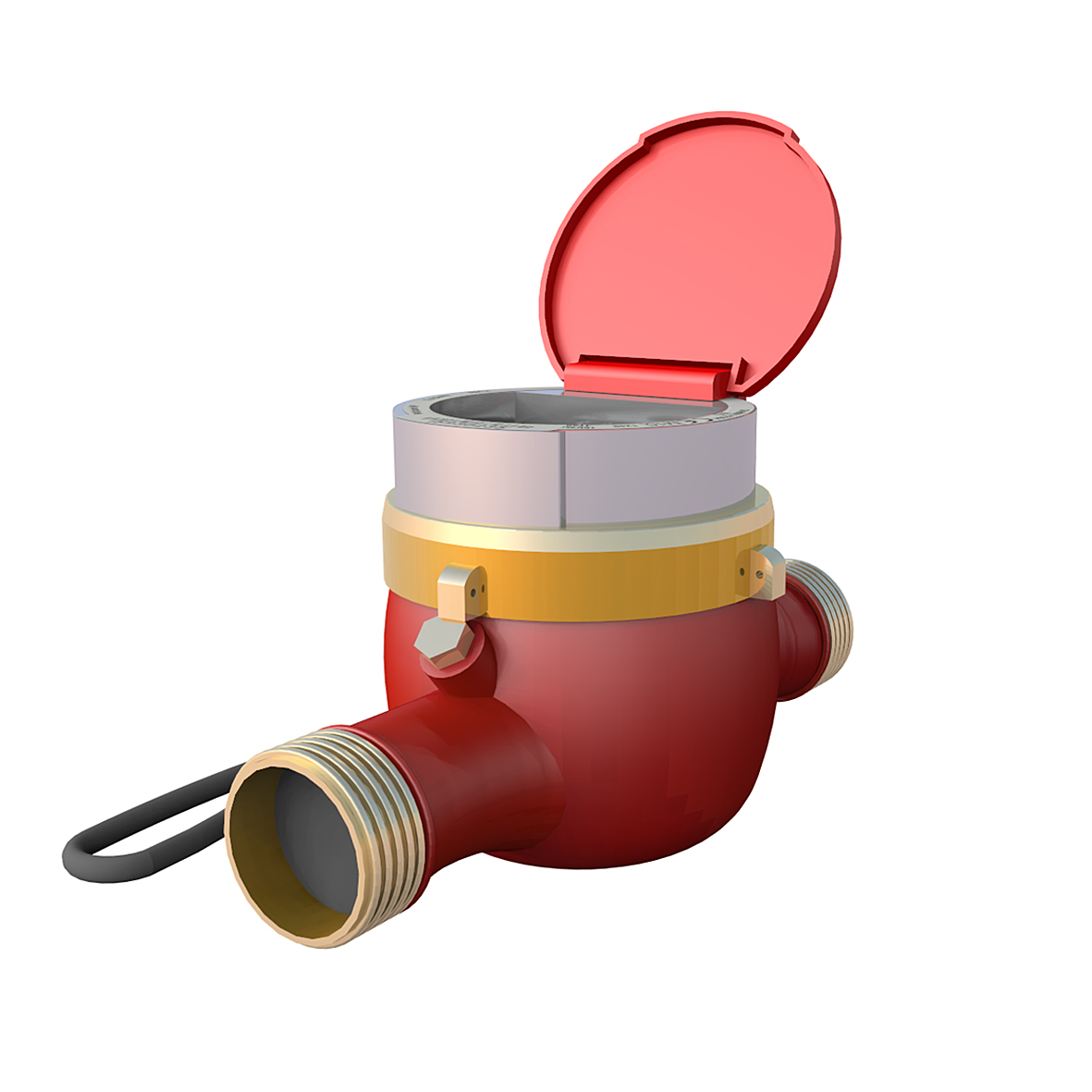 Flerstrålig vinghjulsmätare för volymmätning av varmvatten med integrerad M-Bus.