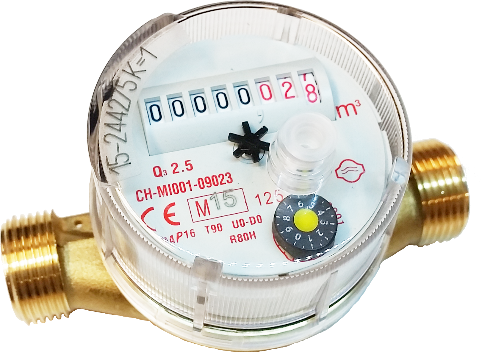 Certifierad varmvattenmätare. Vinghjul, Passar lägenheter. 1 liter/puls.