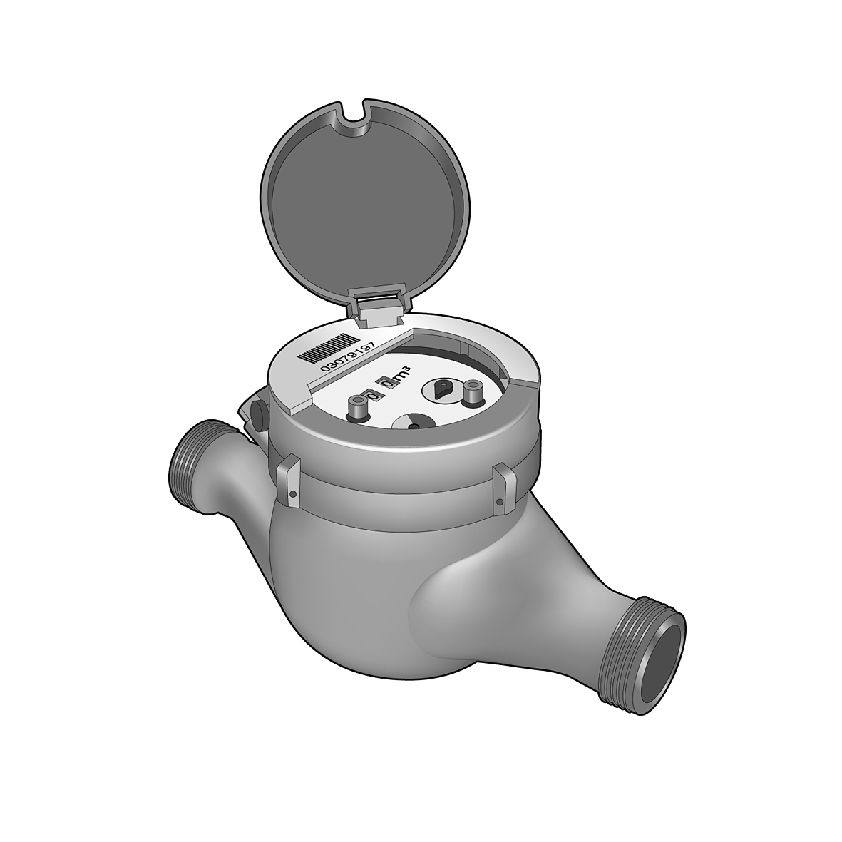 För horisontell montering. Typ våtlöpande vinghjulsmätare med EEG-typgodkännande klass B utan givare.