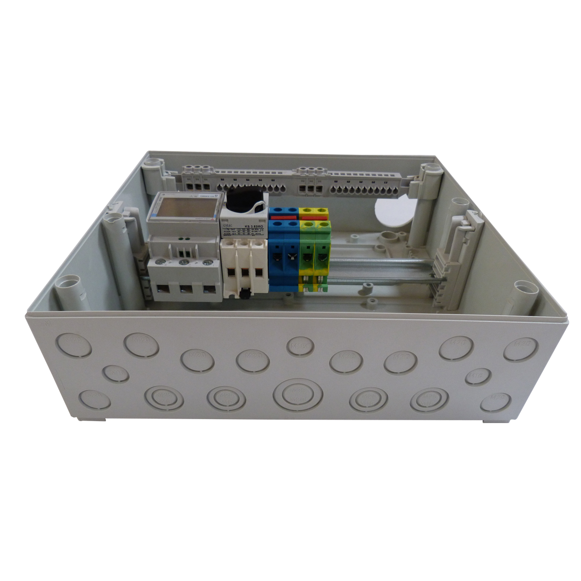 Elmätare med arbetsbrytare till Bosch Fastighetsvärmepumpar Compress 7000 LW 22-48kw. Mäter tillförd energi till värmepumpen. Kommunicerar med vp via modbus.