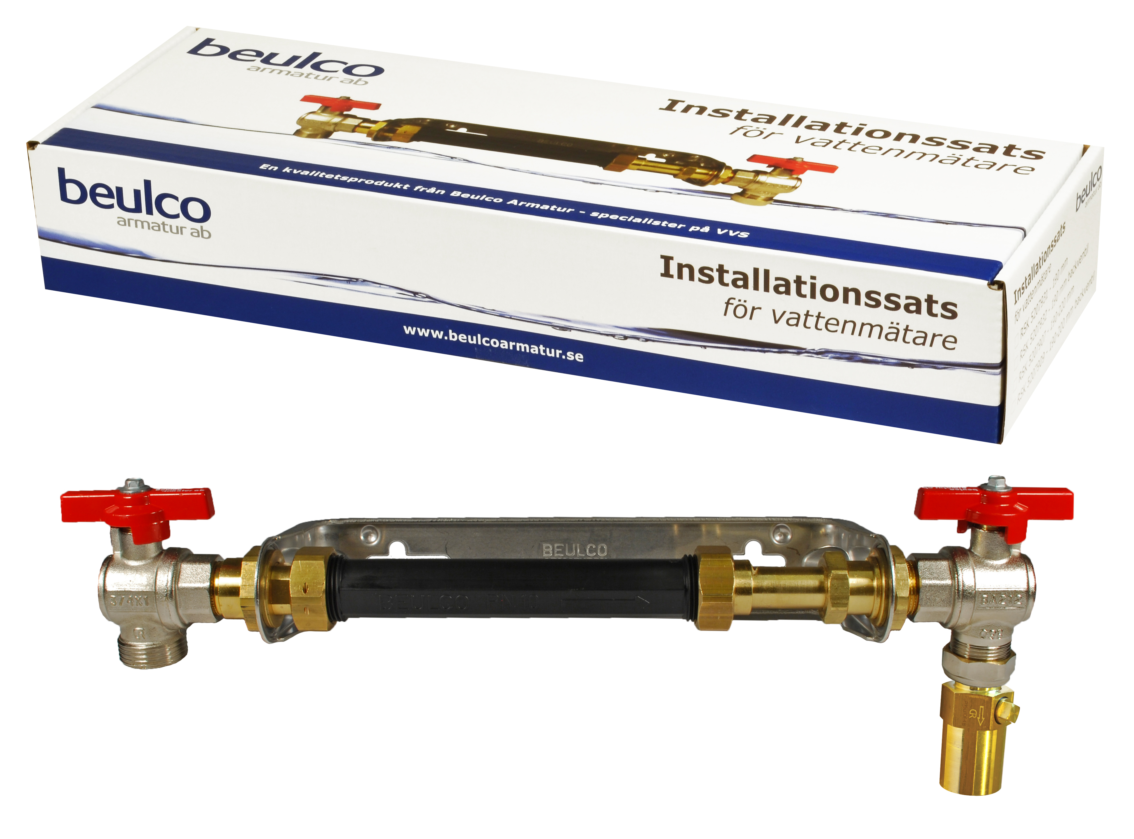 Installationssats komplett med konsol, passbit, packningar, avstängningsventiler i vinkel och kontrollerbar backventil.