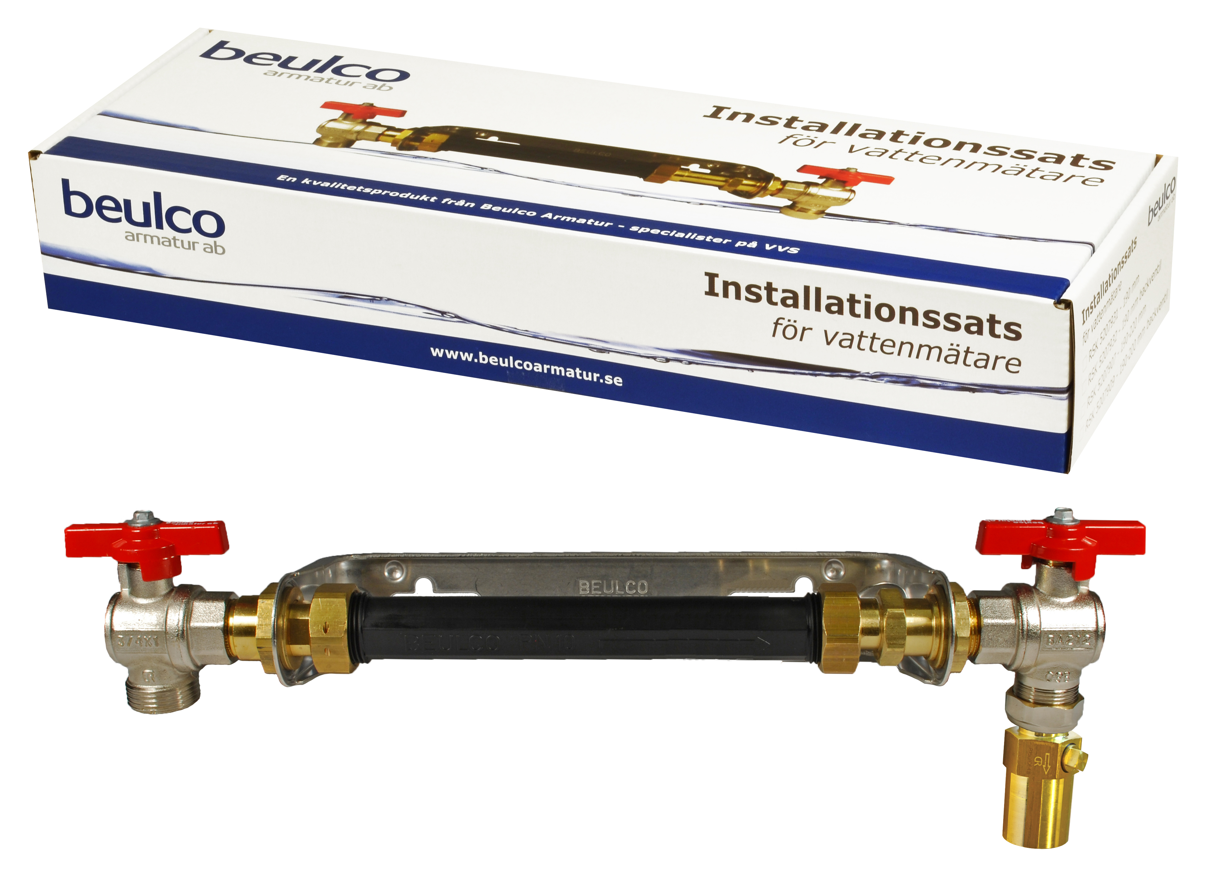 Installationssats komplett med konsol, passbit, packningar, avstängningsventiler i vinkel och kontrollerbar backventil.