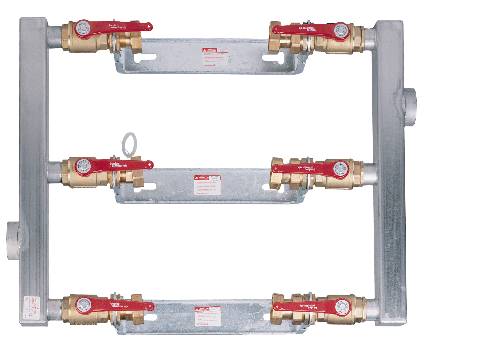 Parallellkopplad vattenmätarkonsol för 3 st vattenmätare Q3 16 med bygglängd 300mm anslutning G2, kontrollerbar backventil på varje enskild konsol. Genom att stänga ventil före och efter en vattenmätare kan denna demonteras samtidigt som vattenflödet är igång genom de andra mätarna.