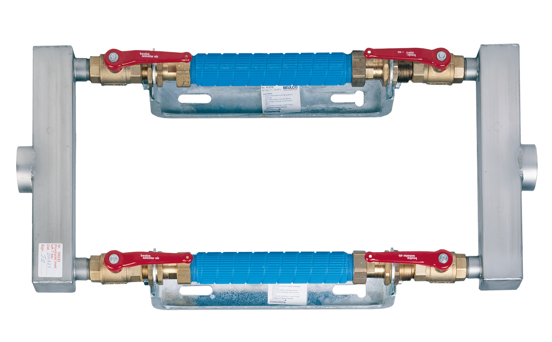Parallellkopplad vattenmätarkonsol för 2 st vattenmätare Q3 6,3 med bygglängd 260mm anslutning G1 1/4. Genom att stänga ventil före och efter en vattenmätare kan denna demonteras samtidigt som vattenflödet är igång genom den andra mätaren.
