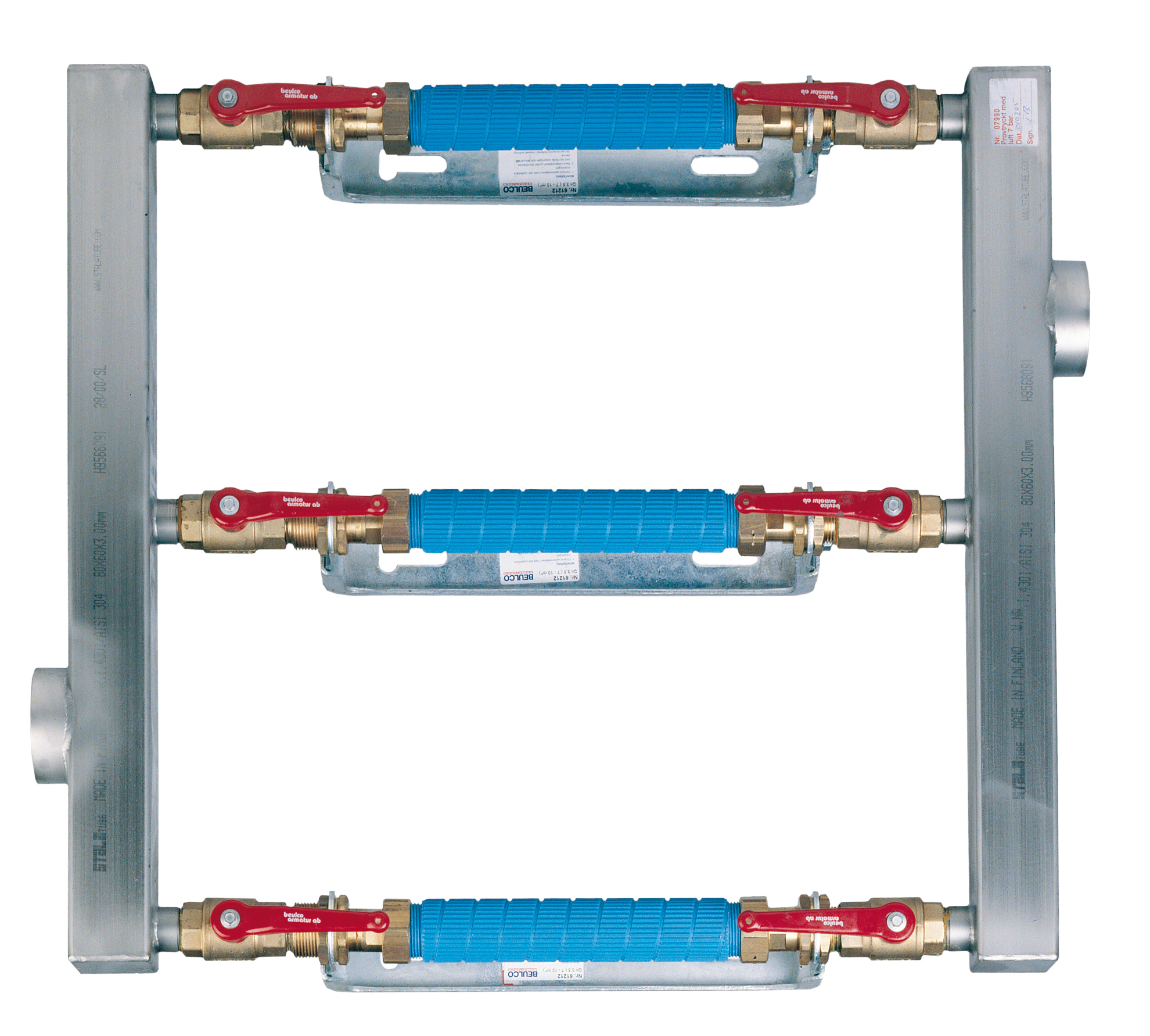 Parallellkopplad vattenmätarkonsol för 3 st vattenmätare Q3 6,3 med bygglängd 260mm anslutning G1 1/4. Genom att stänga ventil före och efter en vattenmätare kan denna demonteras samtidigt som vattenflödet är igång genom de andra mätarna.