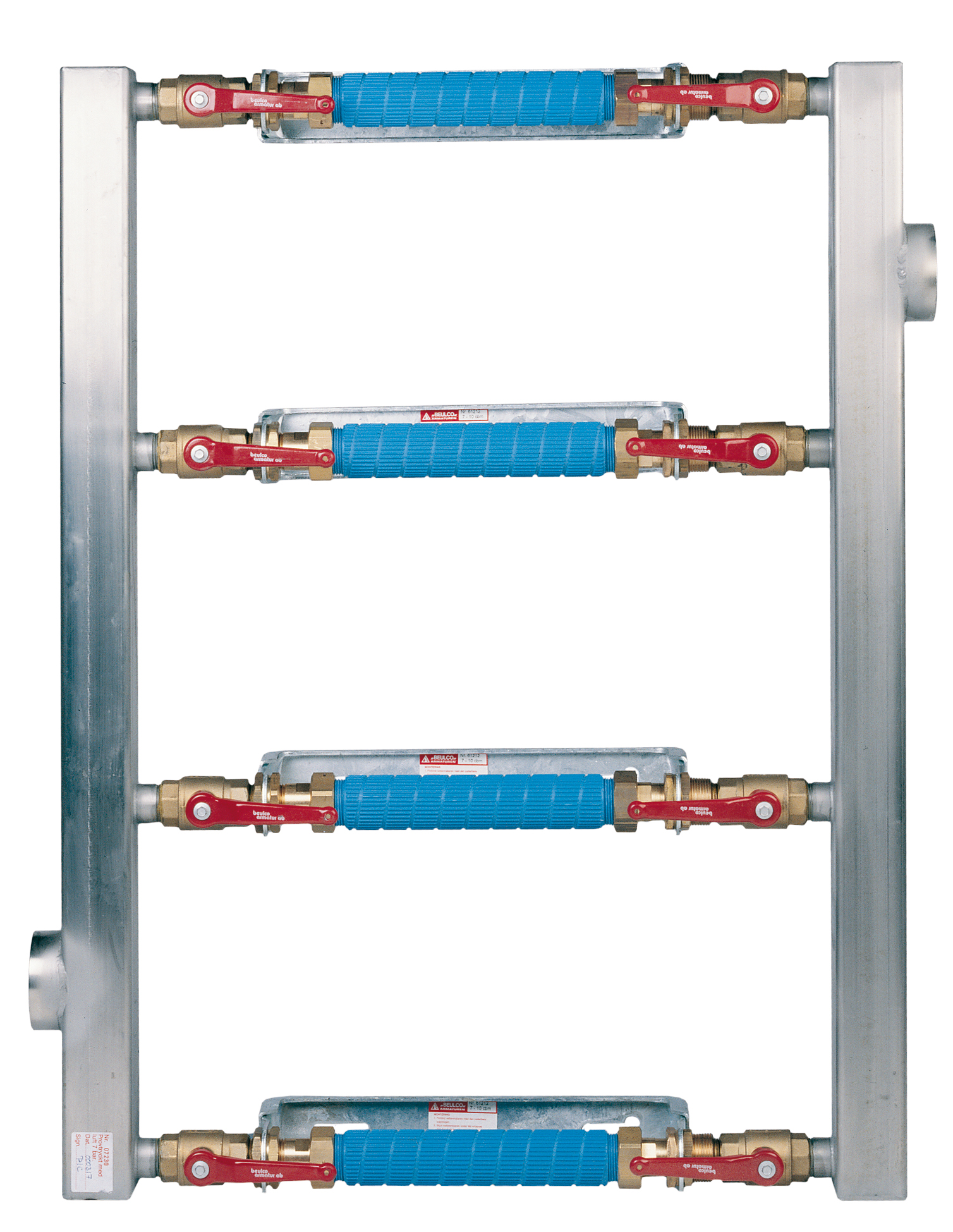 Parallellkopplad vattenmätarkonsol för 4 st vattenmätare Q3 6,3 med bygglängd 260mm anslutning G1 1/4. Genom att stänga ventil före och efter en vattenmätare kan denna demonteras samtidigt som vattenflödet är igång genom de andra mätarna.