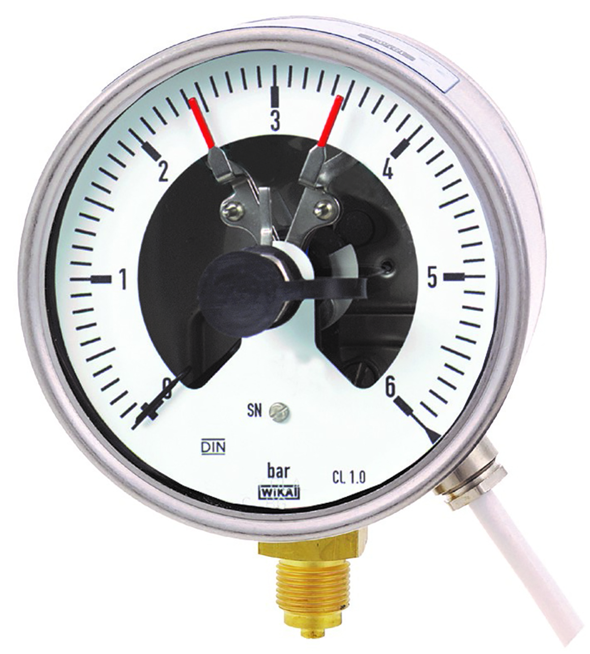 Tryckmätare för neutrala vätskor och gaser. Med larmfunktion för låg och högtryck.