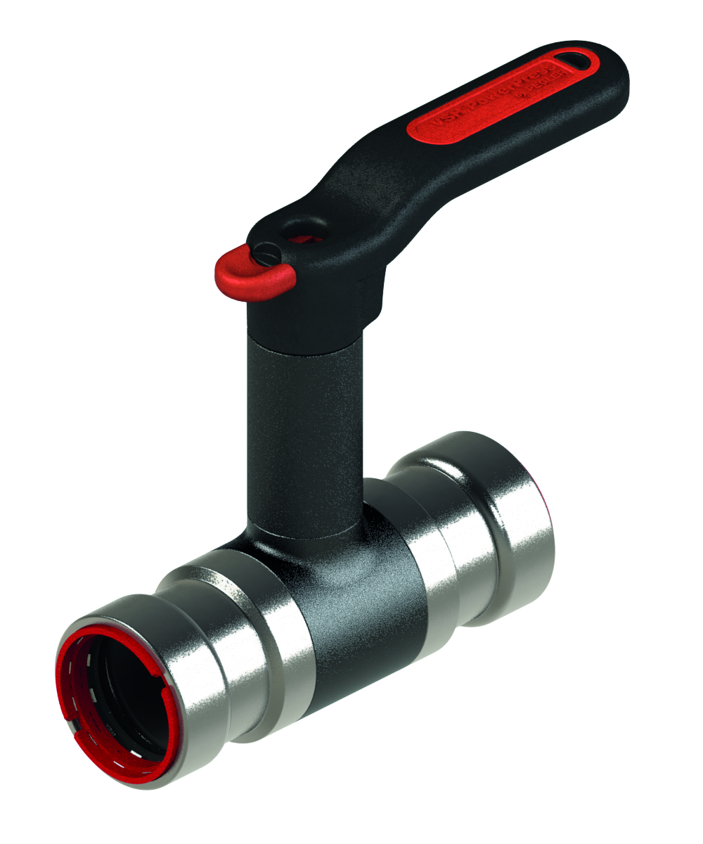 VSH PowerPress PP500EL kulventil i avzinkningshärdig mässing 1 1/2" med vred och hög spindel. Avsett för installationer av värme, sprinkler, kyla och tryckluft tillsammans med stålrör.