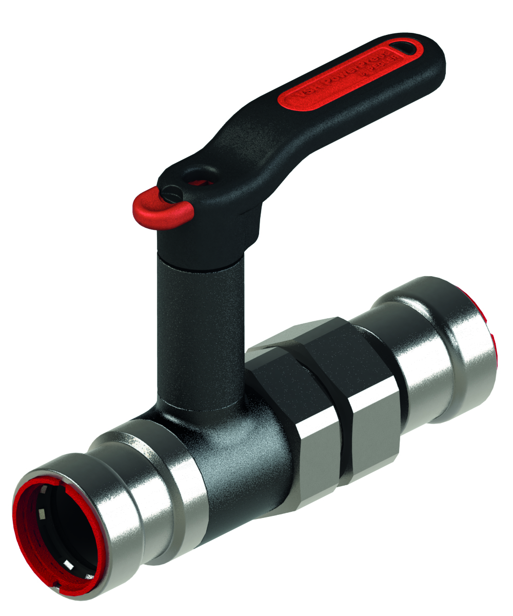 VSH PowerPress PPSU500 uni kulventil i avzinkningshärdig mässing 1 1/4" med vred och hög spindel. Avsett för installationer av värme, sprinkler, kyla och tryckluft tillsammans med stålrör.