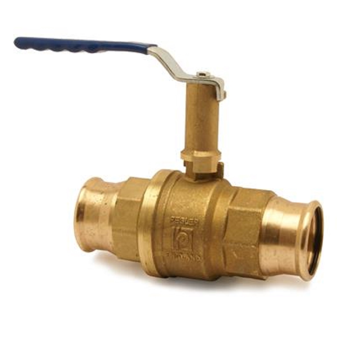 VSH XPress kulventil i avzinkningshärdig mässing för tappvatten. Hög spindel med blått handtag, pressändar i dimension DN15. Användningsområden: