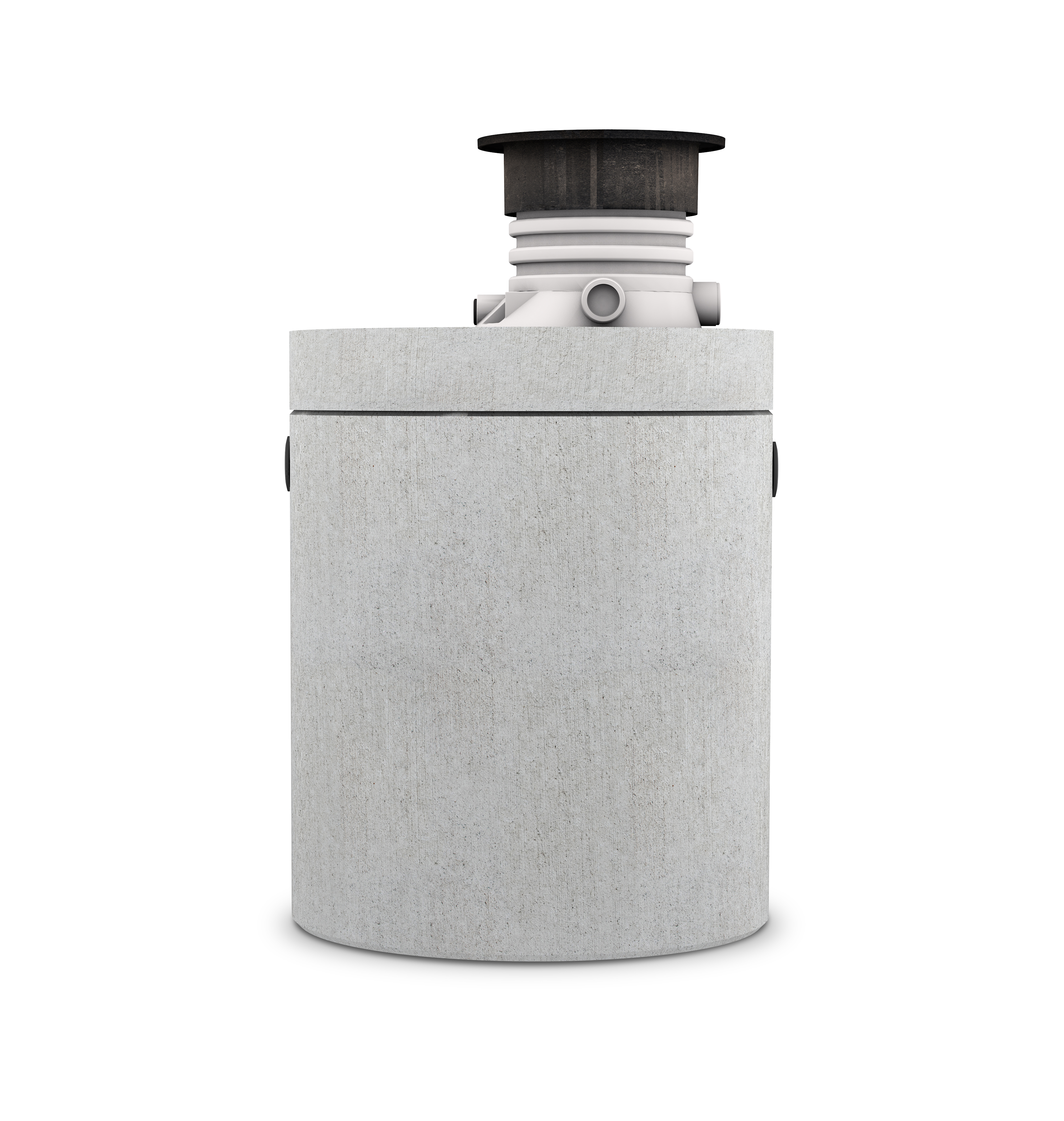 Oljeavskiljare i betong. Hals och betäckning ingår. A-mått: 990–1120 mm.