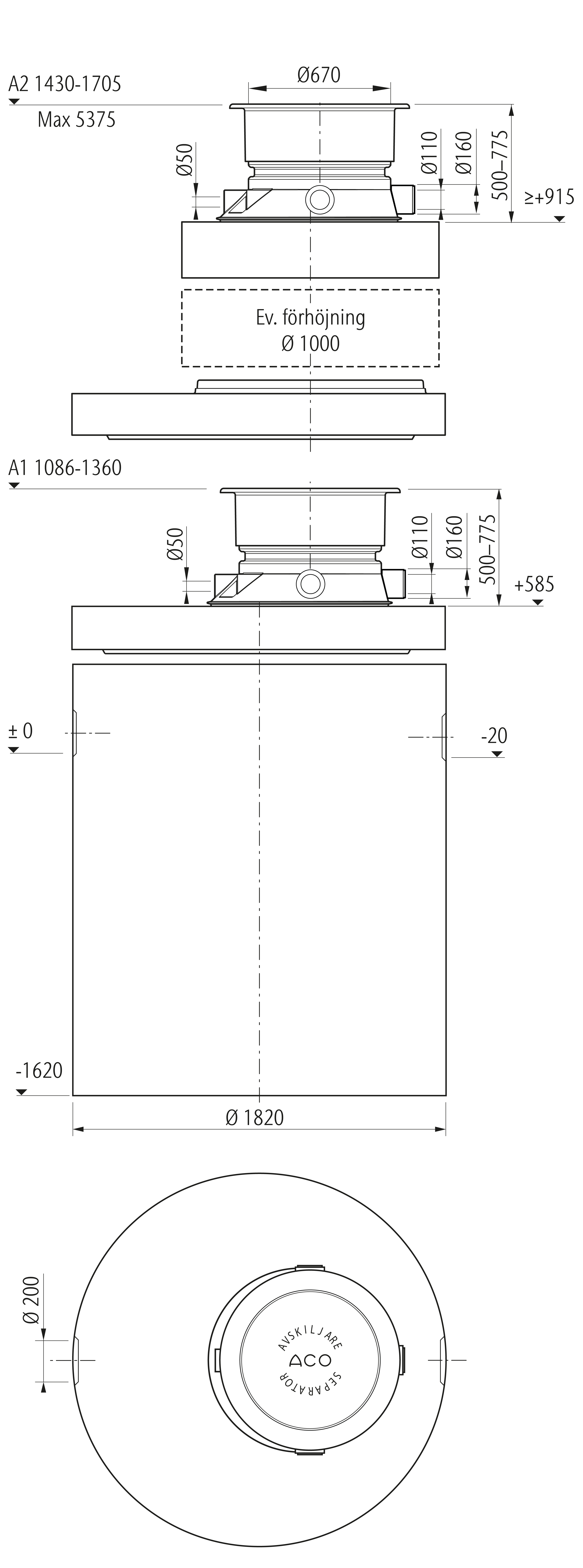 Prefabricerad oljeavskiljare, Klass 1, tillverkad av betong för markförläggning. Avskiljaren levereras komplett med integrerat slamfång, anslutning för ventilation, nedstignings/inspektions och tömningshals, lyftöglor, koalesator, flottörventil och betäckning. A-mått: 1086–1360 mm.