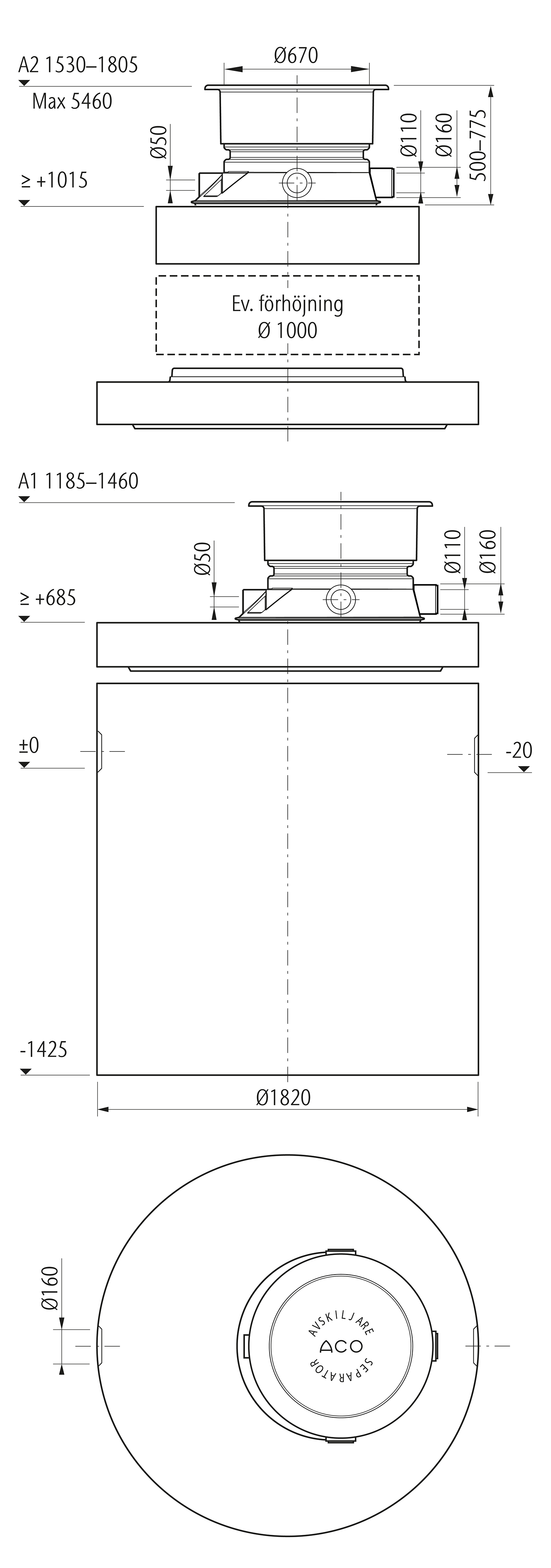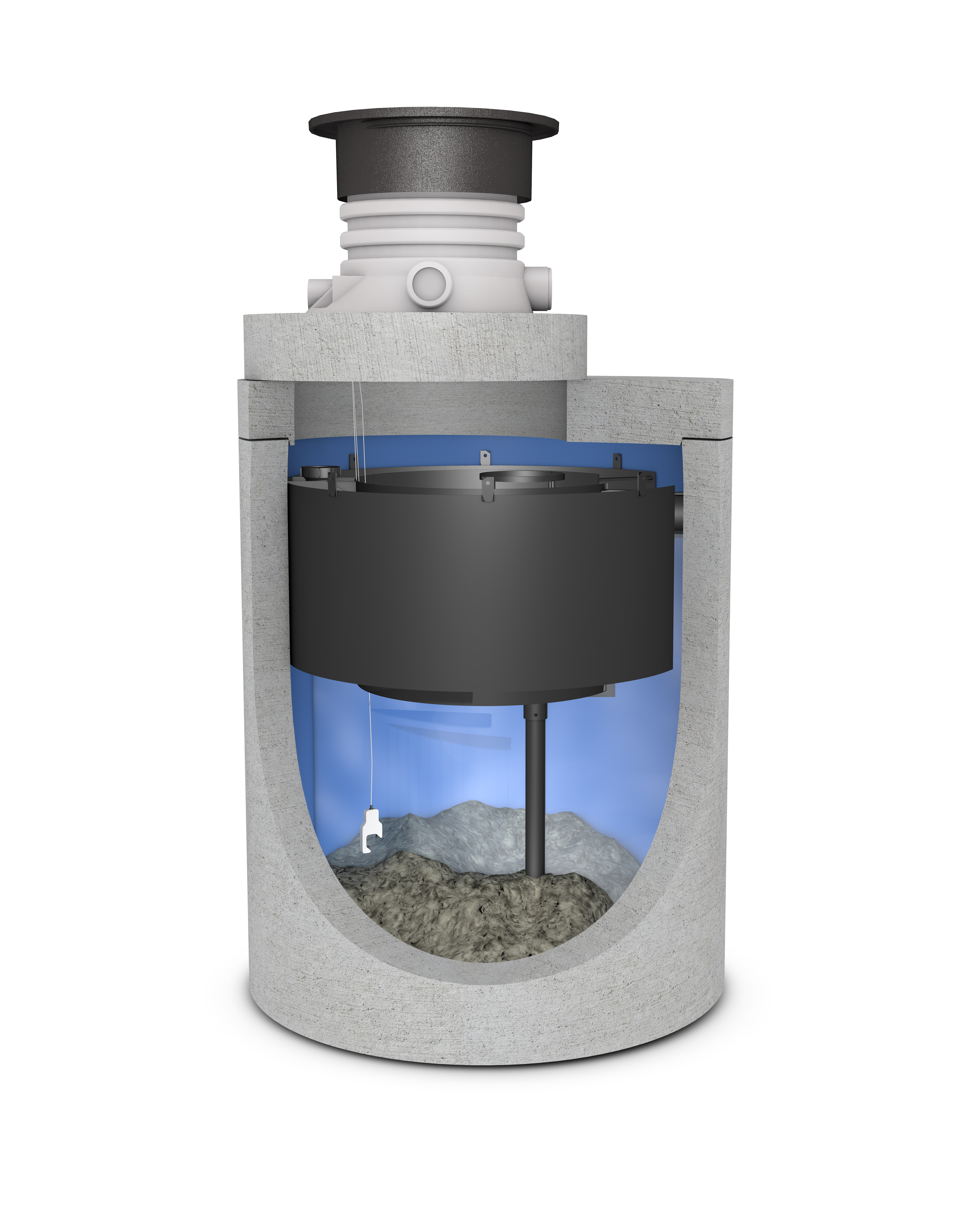 Prefabricerad oljeavskiljare, Klass 1, för extra höga krav på rening. Tillverkad av betong för markförläggning. Avskiljaren levereras komplett med en flerstegs Split Contraction-enhet, integrerat slamfång, anslutning för ventilation, nedstignings/inspektions och tömningshals, lyftöglor, flottörventil och betäckning. A-mått 1120–1395 mm.