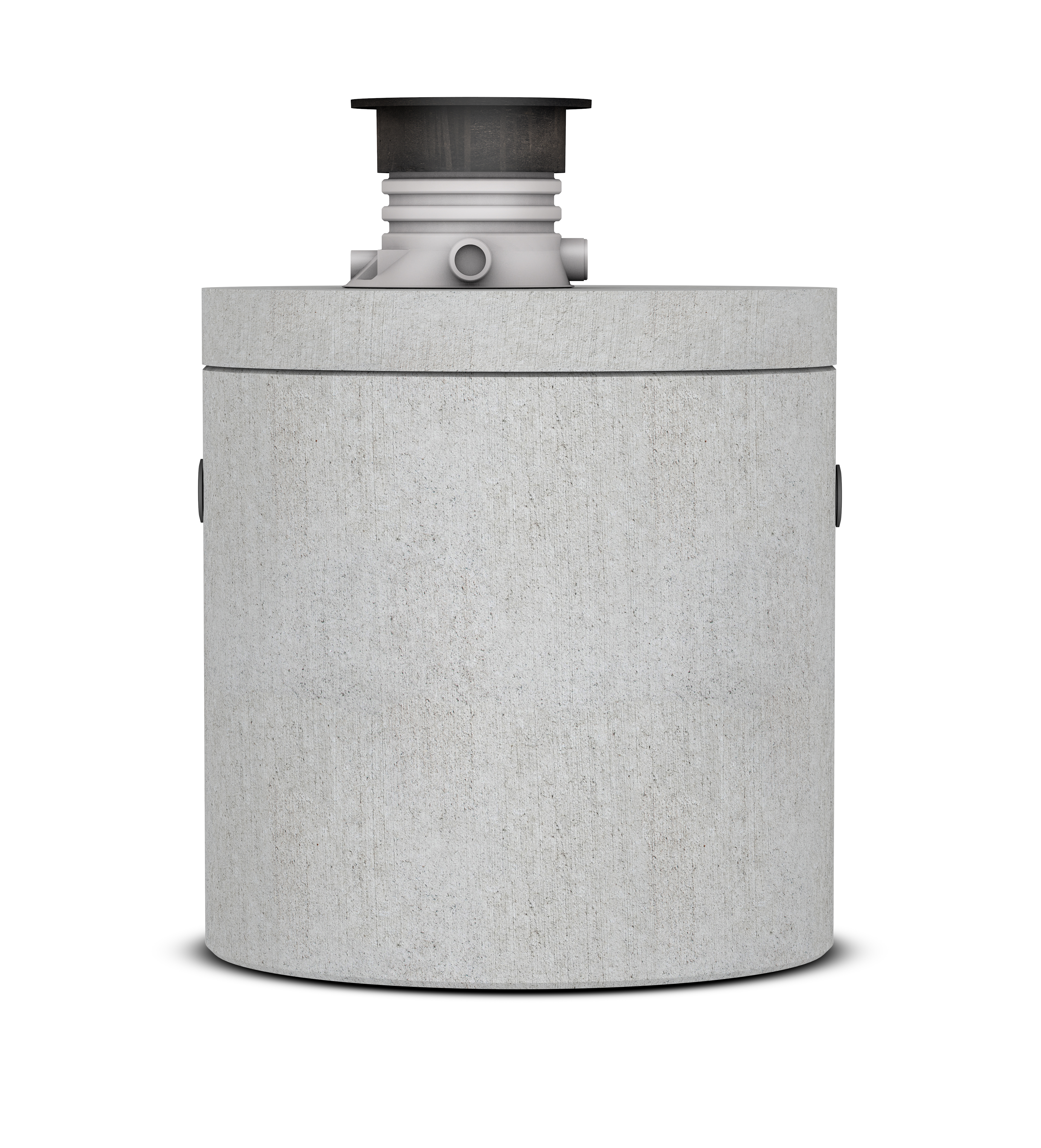 Prefabricerad oljeavskiljare, Klass 1, för extra höga krav på rening. Tillverkad av betong för markförläggning. Avskiljaren levereras komplett med en flerstegs Split Contraction-enhet, integrerat slamfång, anslutning för ventilation, nedstignings/inspektions och tömningshals, lyftöglor, flottörventil och betäckning. A-mått 1375–1650 mm.
