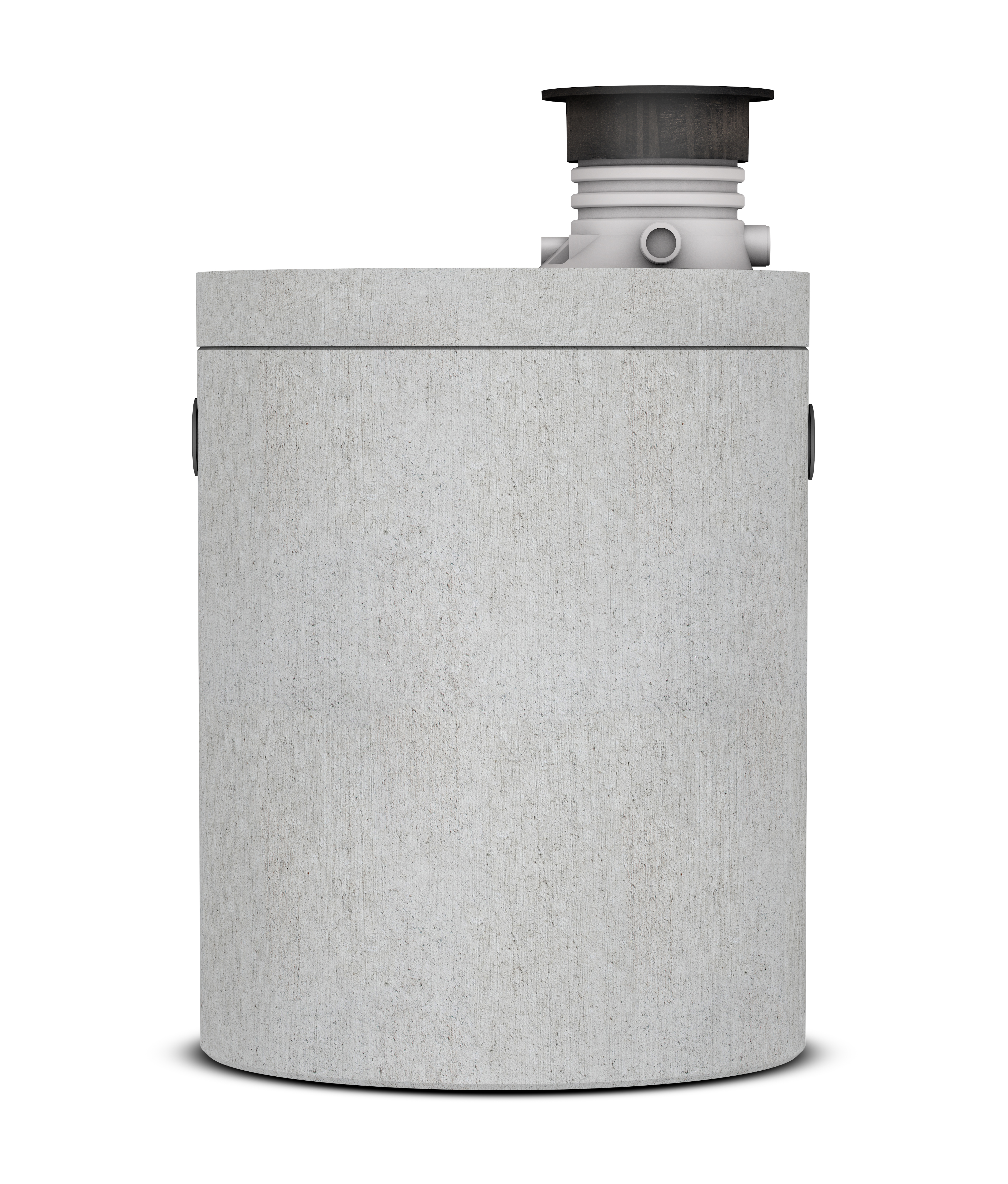 Prefabricerad oljeavskiljare, Klass 1, för extra höga krav på rening. Tillverkad av betong för markförläggning. Avskiljaren levereras komplett med en flerstegs Split Contraction-enhet, integrerat slamfång, anslutning för ventilation, nedstignings/inspektions och tömningshals, lyftöglor, flottörventil och betäckning. A-mått 1280–1555 mm.