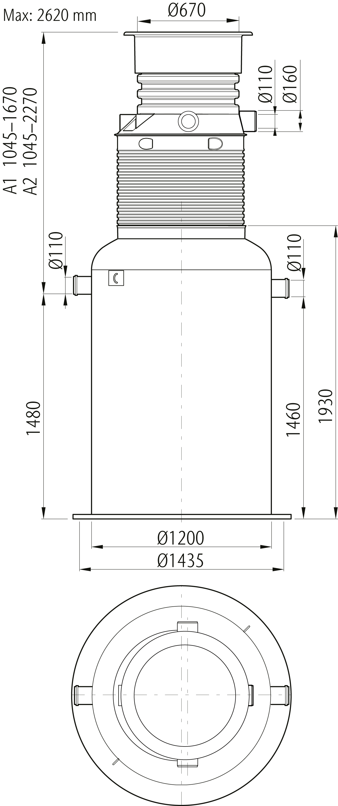 Oleopator G är avsedd för behandling av oljehaltigt spill– och dagvatten med höga krav på reningsgrad. Avskiljarna är utrustade med automatisk avstängningsventil och koalesator, som är lätt uttagbar för rengöring och/eller utbyte samt integrerat slamfång på de flesta modeller. A1–mått 1045–1670 mm