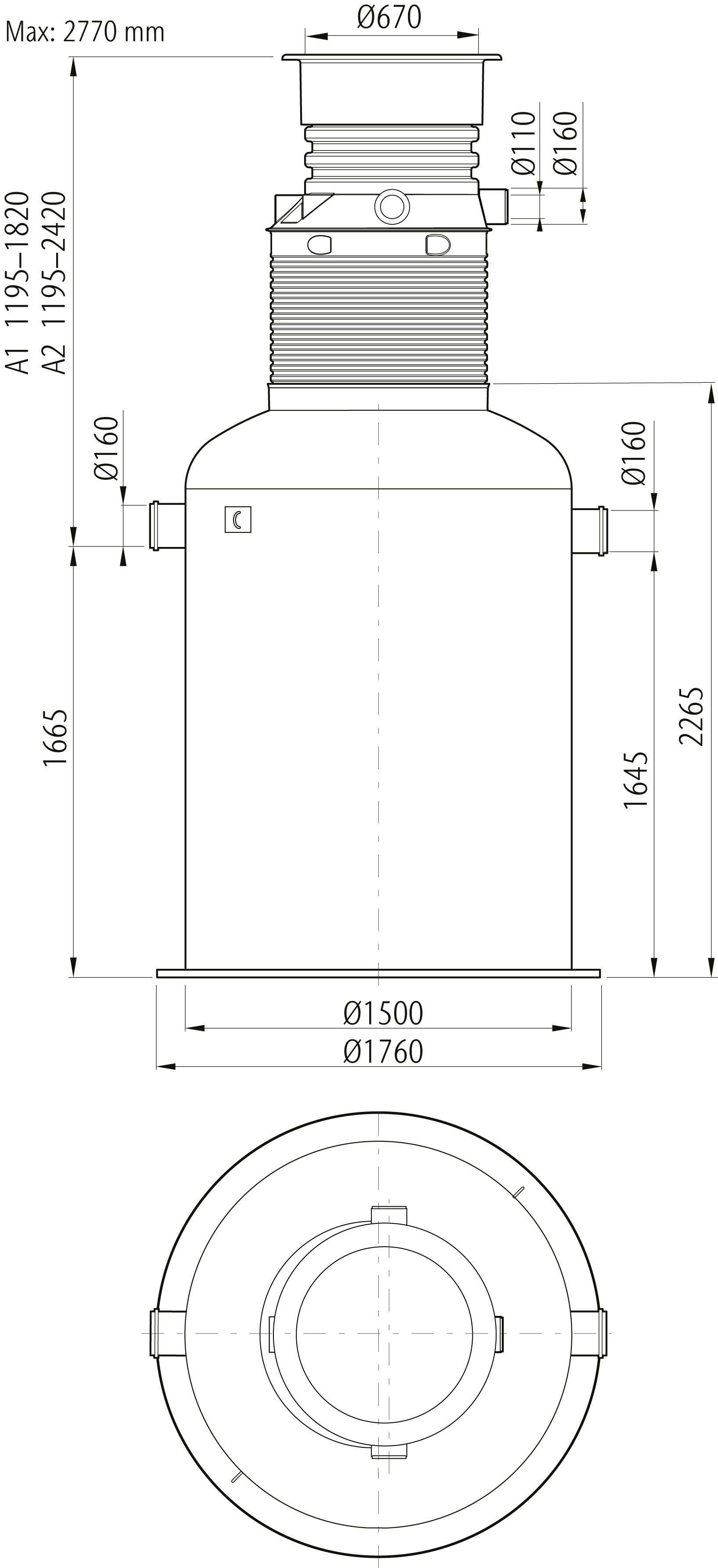 Oleopator G är avsedd för behandling av oljehaltigt spill– och dagvatten med höga krav på reningsgrad. Avskiljarna är utrustade med automatisk avstängningsventil och koalesator, som är lätt uttagbar för rengöring och/eller utbyte samt integrerat slamfång på de flesta modeller. A2–mått 1195–2420 mm