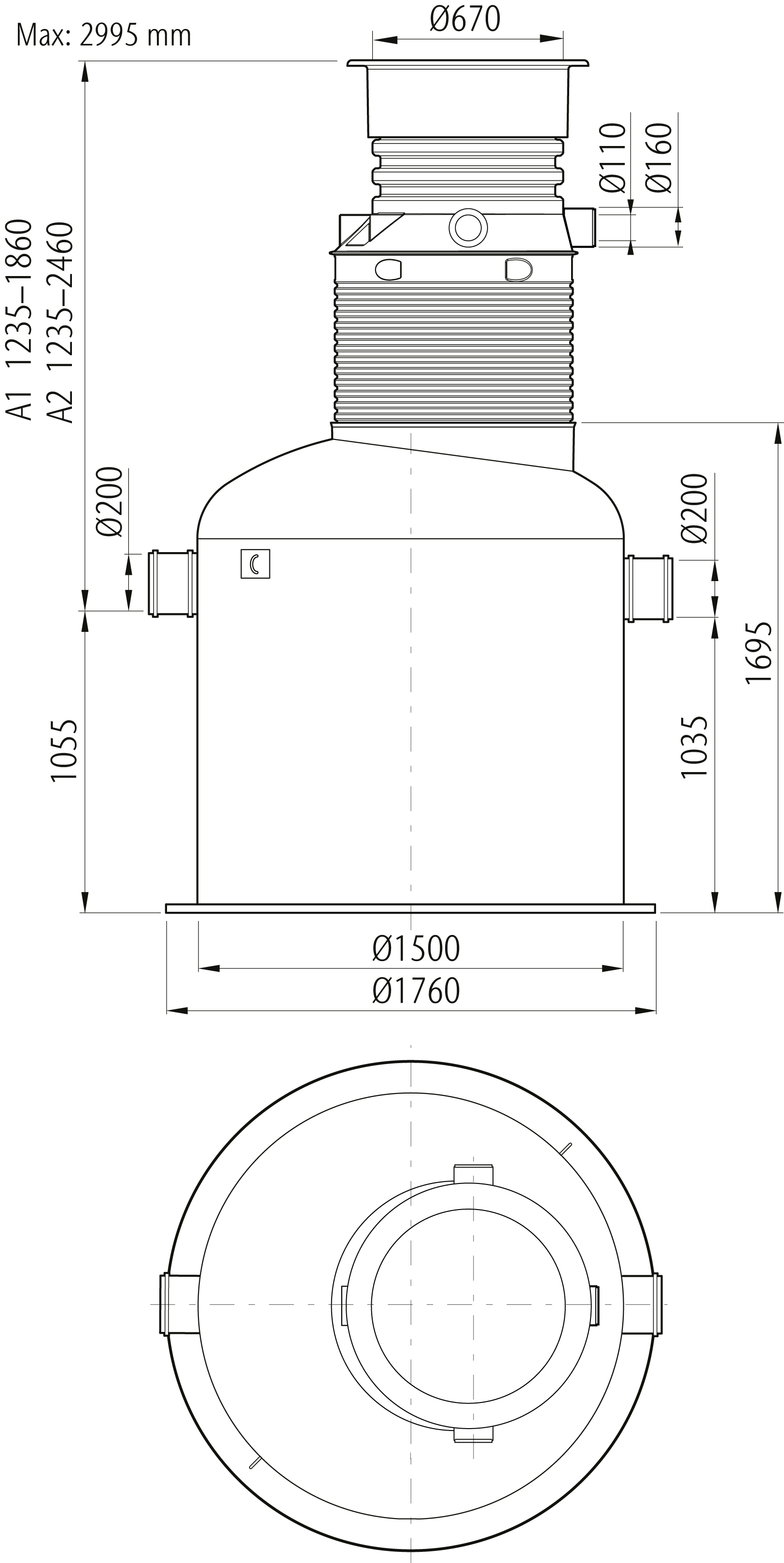 Oleopator G är avsedd för behandling av oljehaltigt spill– och dagvatten med höga krav på reningsgrad. Avskiljarna är utrustade med automatisk avstängningsventil och koalesator, som är lätt uttagbar för rengöring och/eller utbyte samt integrerat slamfång på de flesta modeller. A1–mått 1235–1860 mm