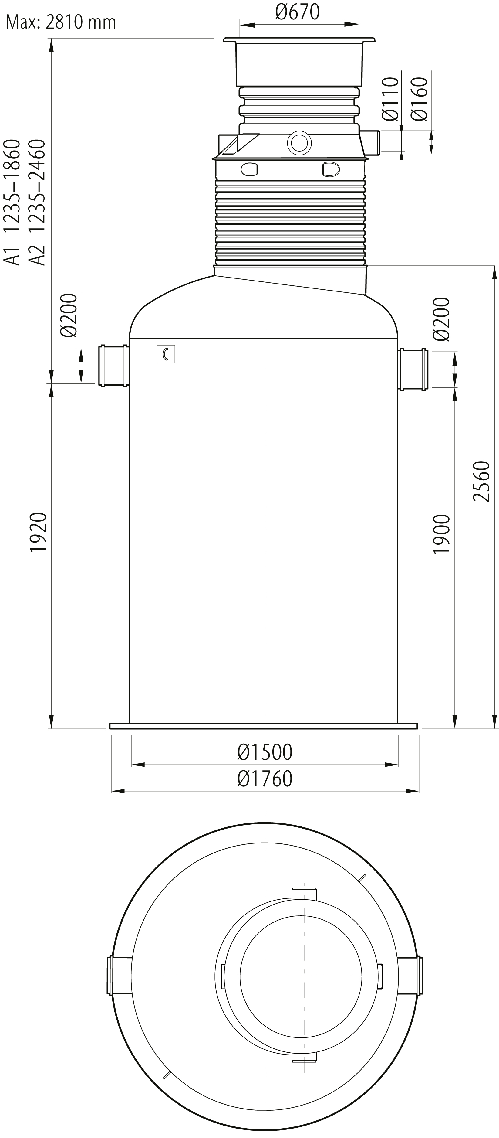 Oleopator G är avsedd för behandling av oljehaltigt spill– och dagvatten med höga krav på reningsgrad. Avskiljarna är utrustade med automatisk avstängningsventil och koalesator, som är lätt uttagbar för rengöring och/eller utbyte samt integrerat slamfång på de flesta modeller. A2–mått 1235–2460 mm