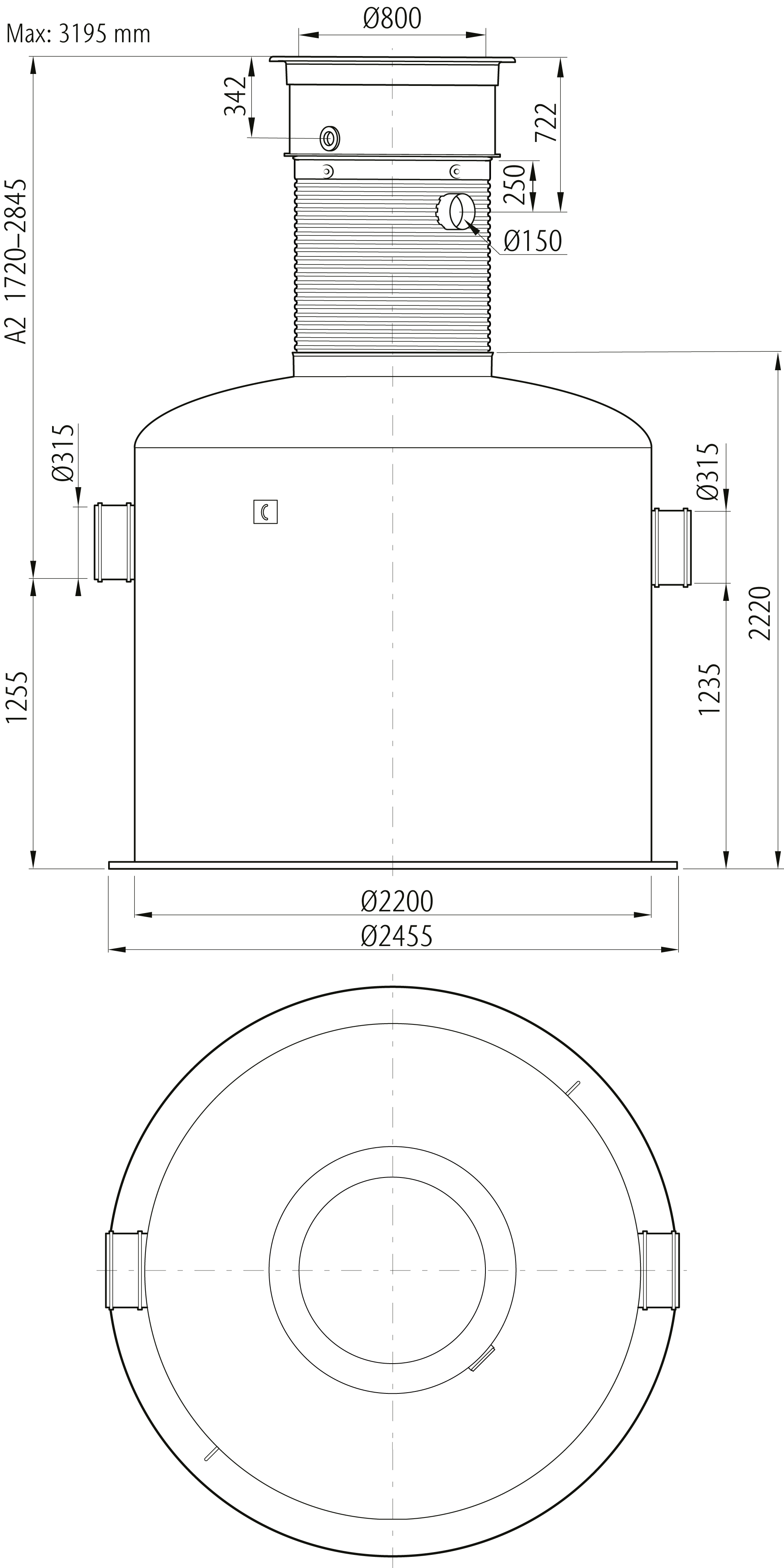 Oleopator G är avsedd för behandling av oljehaltigt spill– och dagvatten med höga krav på reningsgrad. Avskiljarna är utrustade med automatisk avstängningsventil och koalesator, som är lätt uttagbar för rengöring och/eller utbyte samt integrerat slamfång på de flesta modeller. A2–mått 1720–2845 mm