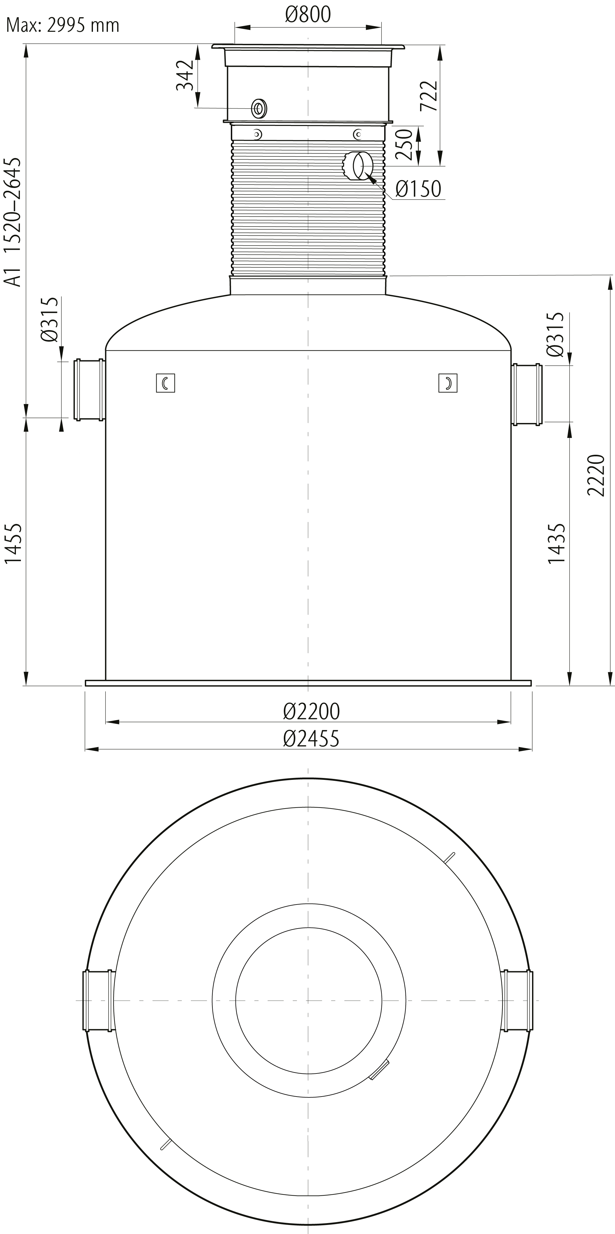 Oleopator G är avsedd för behandling av oljehaltigt spill– och dagvatten med höga krav på reningsgrad. Avskiljarna är utrustade med automatisk avstängningsventil och koalesator, som är lätt uttagbar för rengöring och/eller utbyte samt integrerat slamfång på de flesta modeller. A2–mått 1520–2645 mm