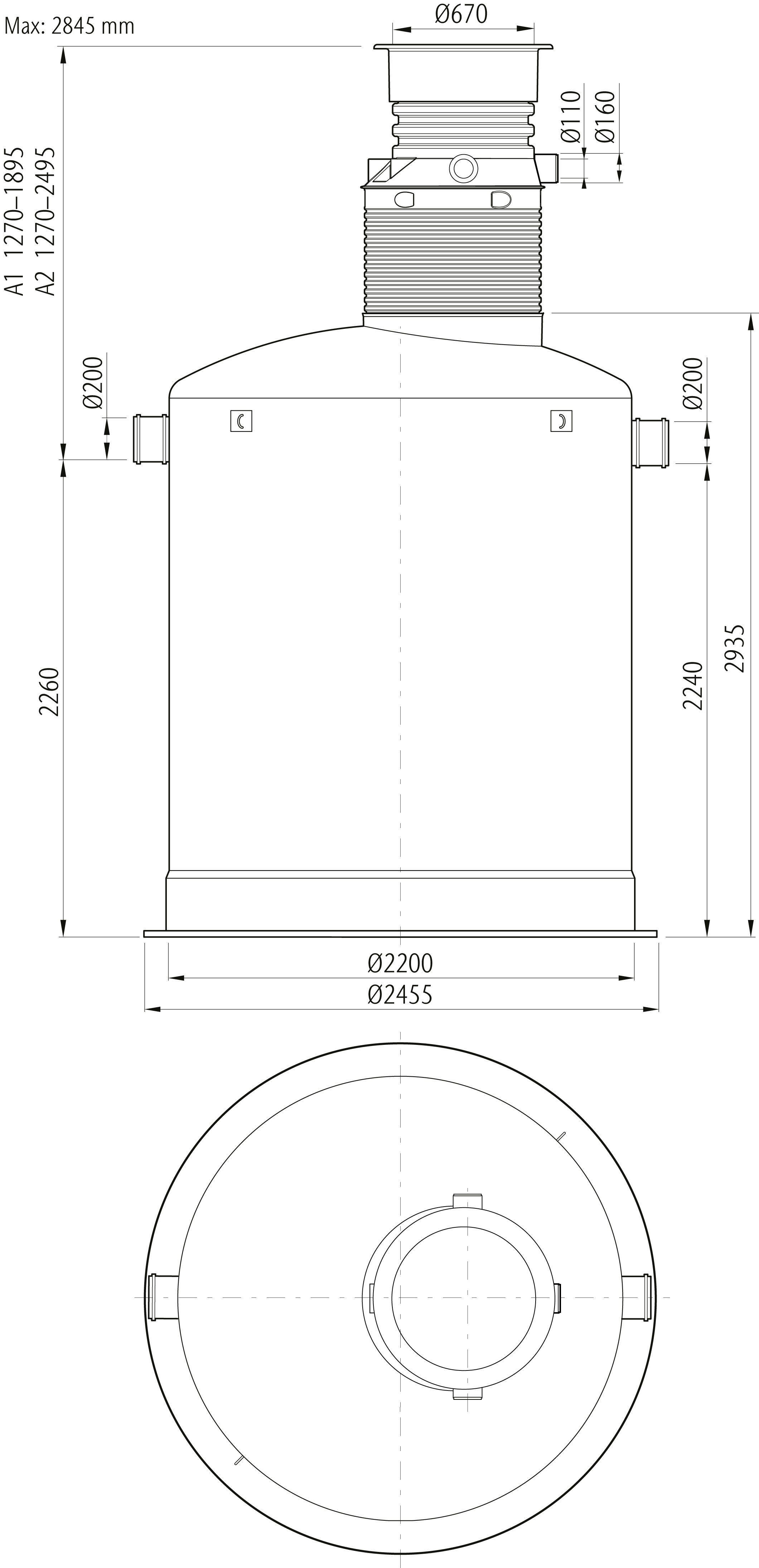 Oleopator G är avsedd för behandling av oljehaltigt spill– och dagvatten med höga krav på reningsgrad. Avskiljarna är utrustade med automatisk avstängningsventil och koalesator, som är lätt uttagbar för rengöring och/eller utbyte samt integrerat slamfång på de flesta modeller. A2–mått 1270–2495 mm