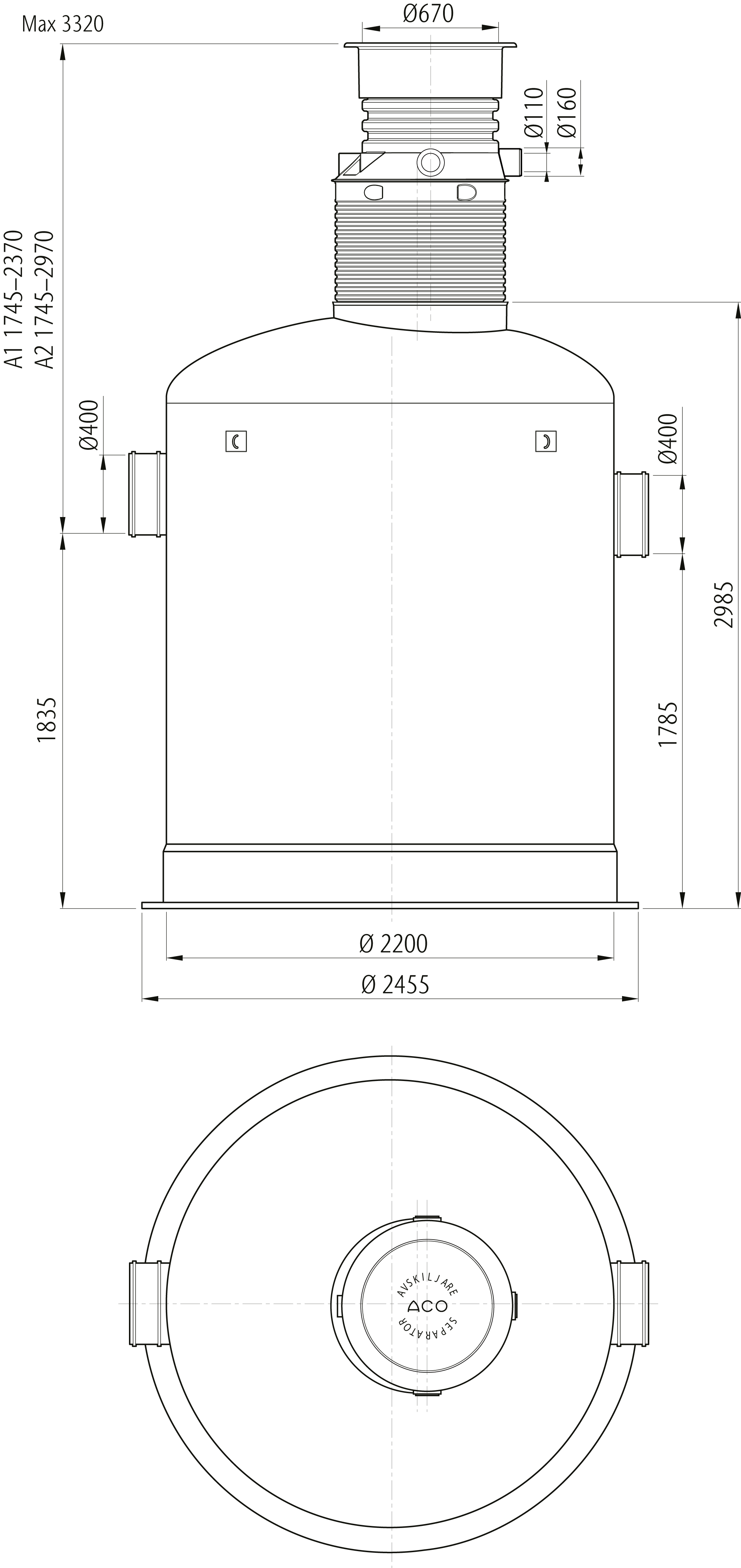 Oleopator Bypass G är avsedd för behandling av oljehaltigt dagvatten med höga krav på reningsgrad. Oleopator Bypass G är en bypass avskiljare, där reglering av flödet sker helt utan rörliga delar. Vid avvattning av större ytor med höga regnflöden är det lämpligt att installera ett bypassystem som leder överskottet förbi avskiljaren som skydd mot överbelastning. A1-mått 1745-2370 mm