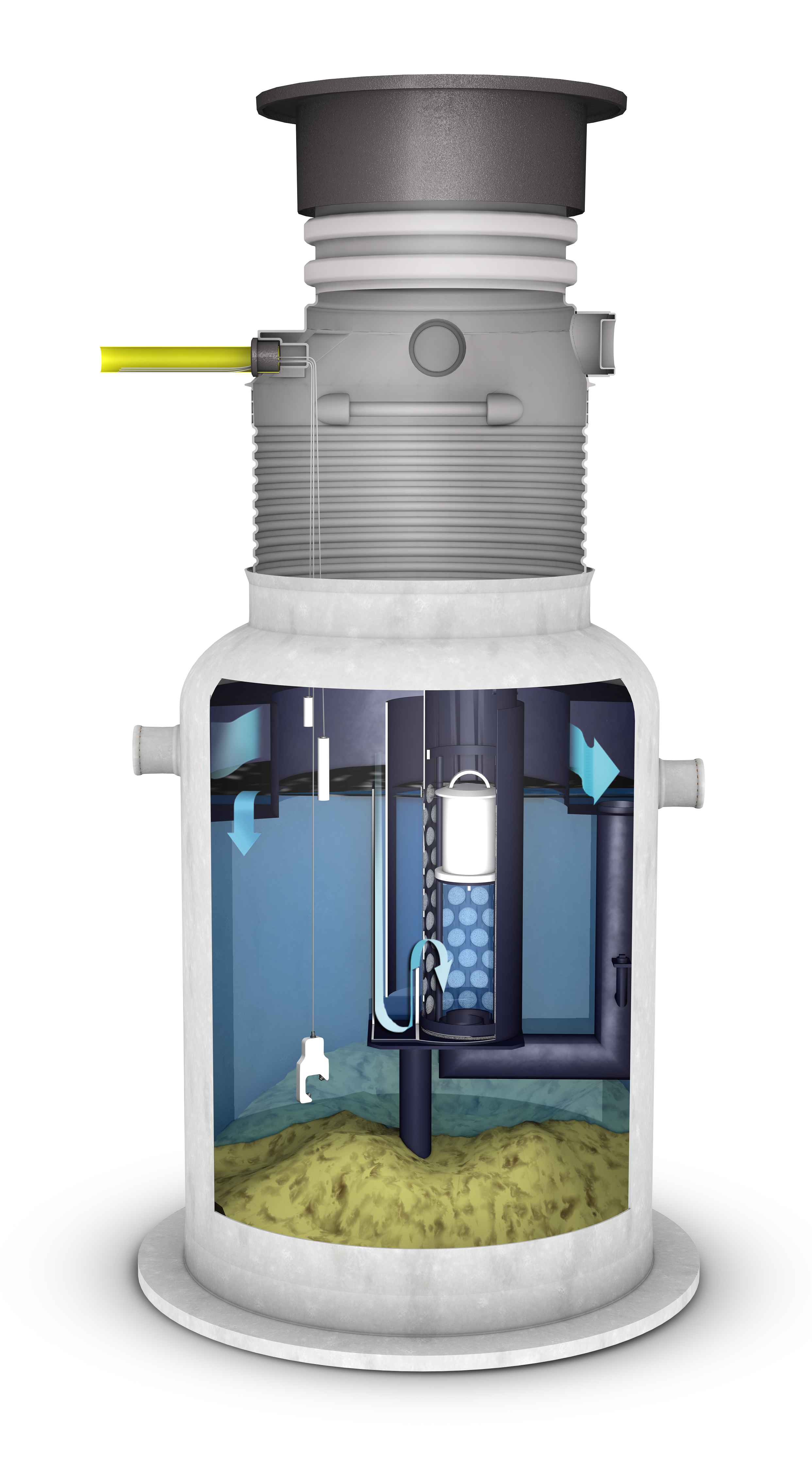 Oleopator Bypass G är avsedd för behandling av oljehaltigt dagvatten med höga krav på reningsgrad. Oleopator Bypass G är en bypass avskiljare, där reglering av flödet sker helt utan rörliga delar. Vid avvattning av större ytor med höga regnflöden är det lämpligt att installera ett bypassystem som leder överskottet förbi avskiljaren som skydd mot överbelastning. A1-mått 1745-2370 mm