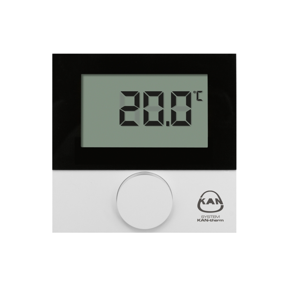 Rumstermostat Basic+ med LCD-skärm Standard. 24 V. Termostaten är kompatibel med ställdon som har kodnummer 1802003004 och 1802003006, genom mottagarenheter med kodnummer 1802212013, 1802212014, 1802212015, 1802212016. Det krävs elinstallation med minst 3 kablar.