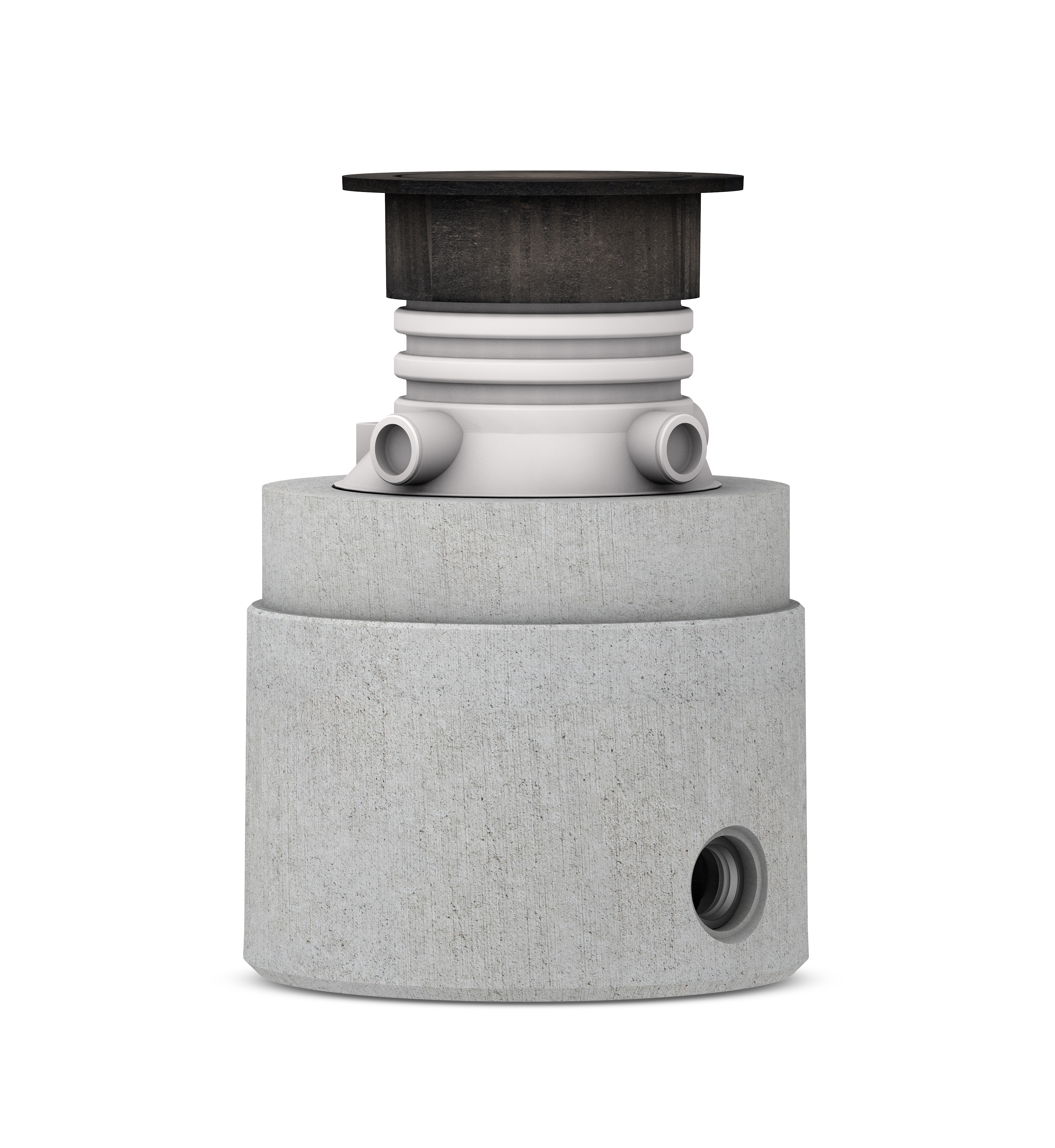 Provtagningsbrunn i betong bestående av underdel, täckplatta, förhöjningshals och betäckning. Installeras på markförlagd ledning efter olje- och fettavskiljare eller i annat sammanhang där provtagning behövs. Provtagning sker i fristråle. Inbyggt stalp på 160 mm. Betäckningen är körbar i klass D400. Enheten behöver inte skyddas med belastningsskydd. Brunnen kan även användas som tillsyns- och nedstigningsbrunn.