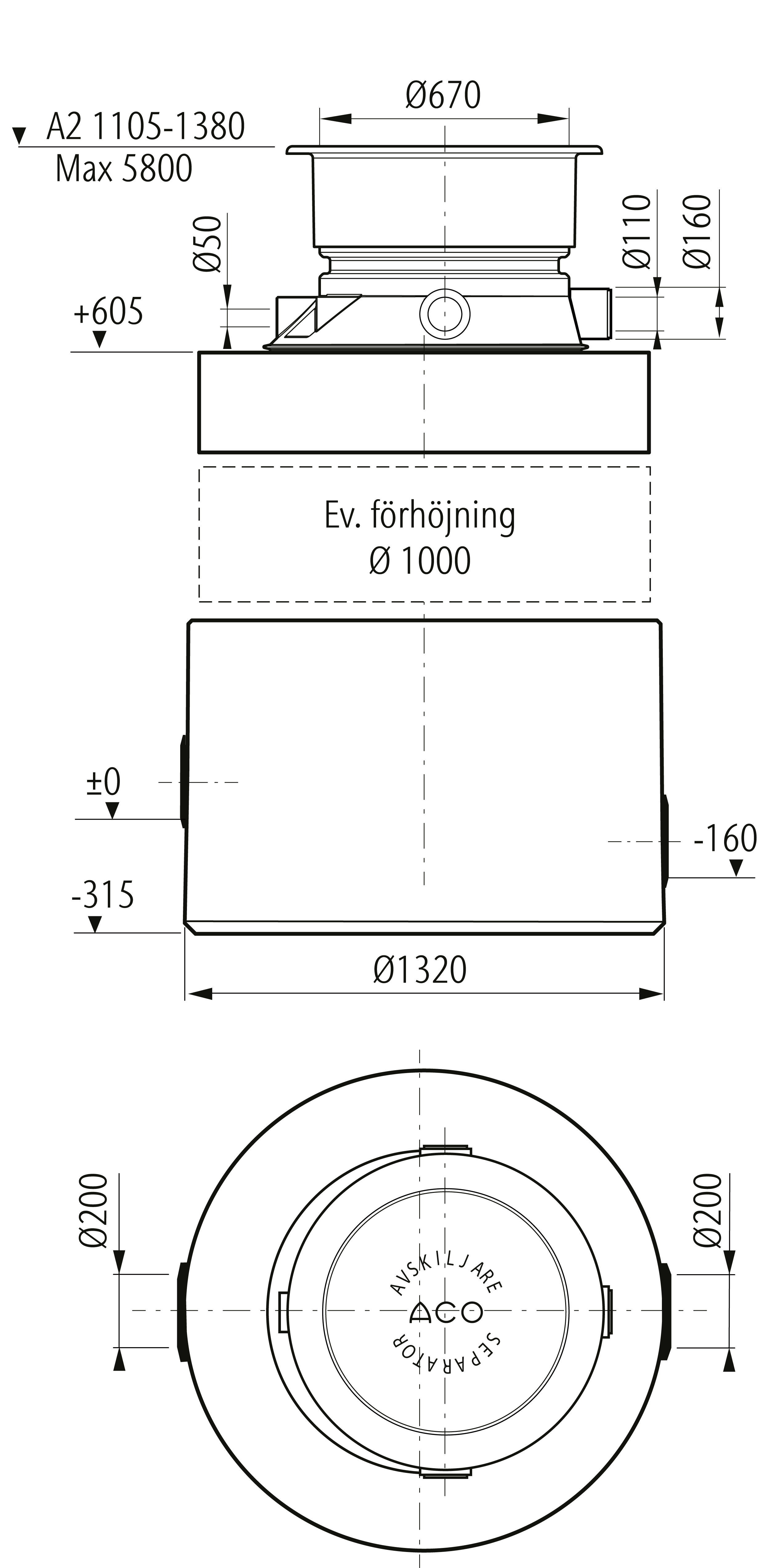 ACO PROWELL C 160-20 0 A2 PROVTAGNINGSBRUNN DN200