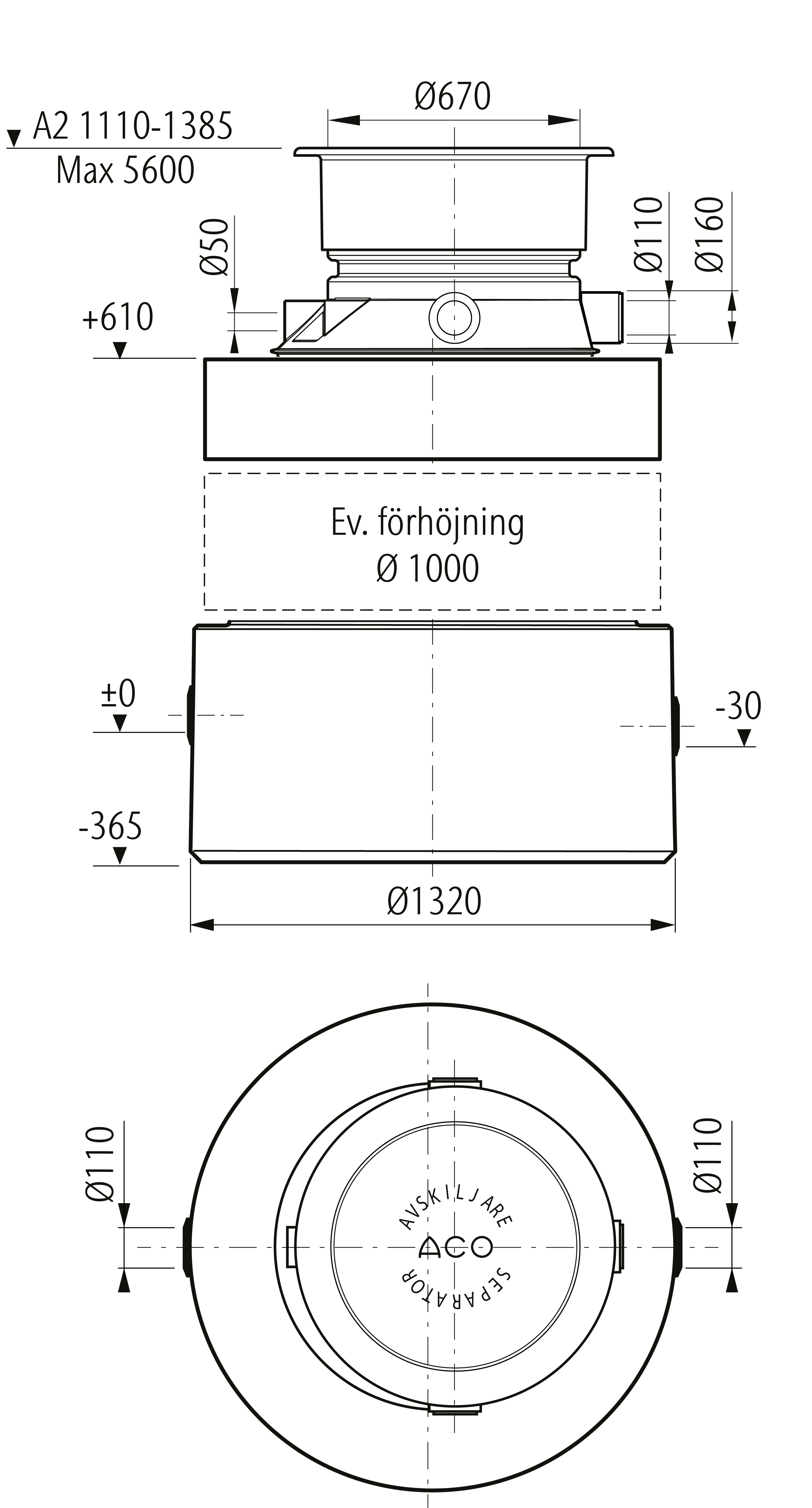 ACO PROWELL C 30-110 A2 PROVTAGNINGSBRUNN DN100