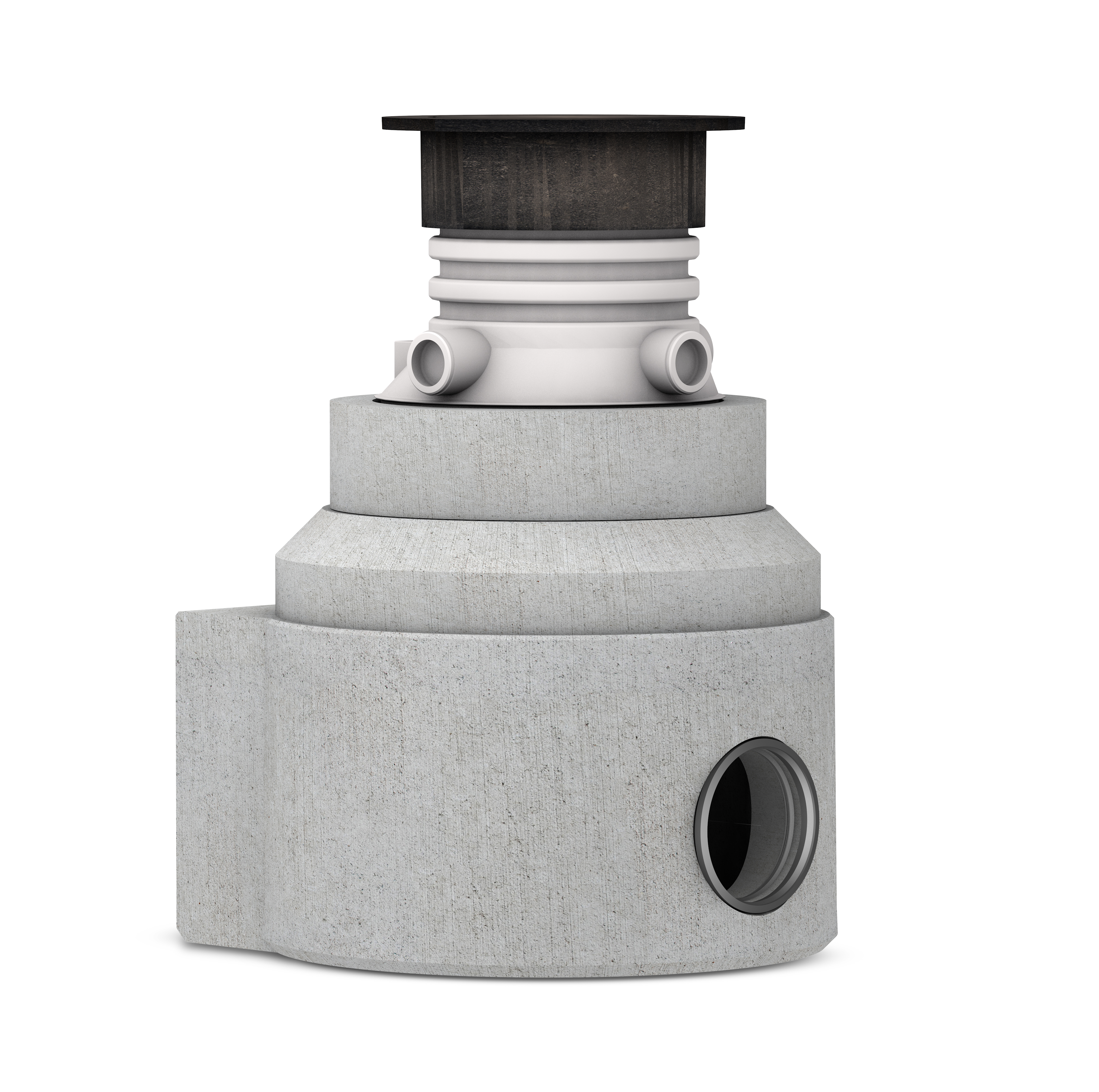 Provtagningsbrunn i betong bestående av underdel, täckplatta, förhöjningshals och betäckning. Installeras på markförlagd ledning efter olje- och fettavskiljare eller i annat sammanhang där provtagning behövs. Provtagning sker i fristråle. Inbyggt stalp på 30 mm. Betäckningen är körbar i klass D400. Enheten behöver inte skyddas med belastningsskydd. Brunnen kan även användas som tillsyns- och nedstigningsbrunn.