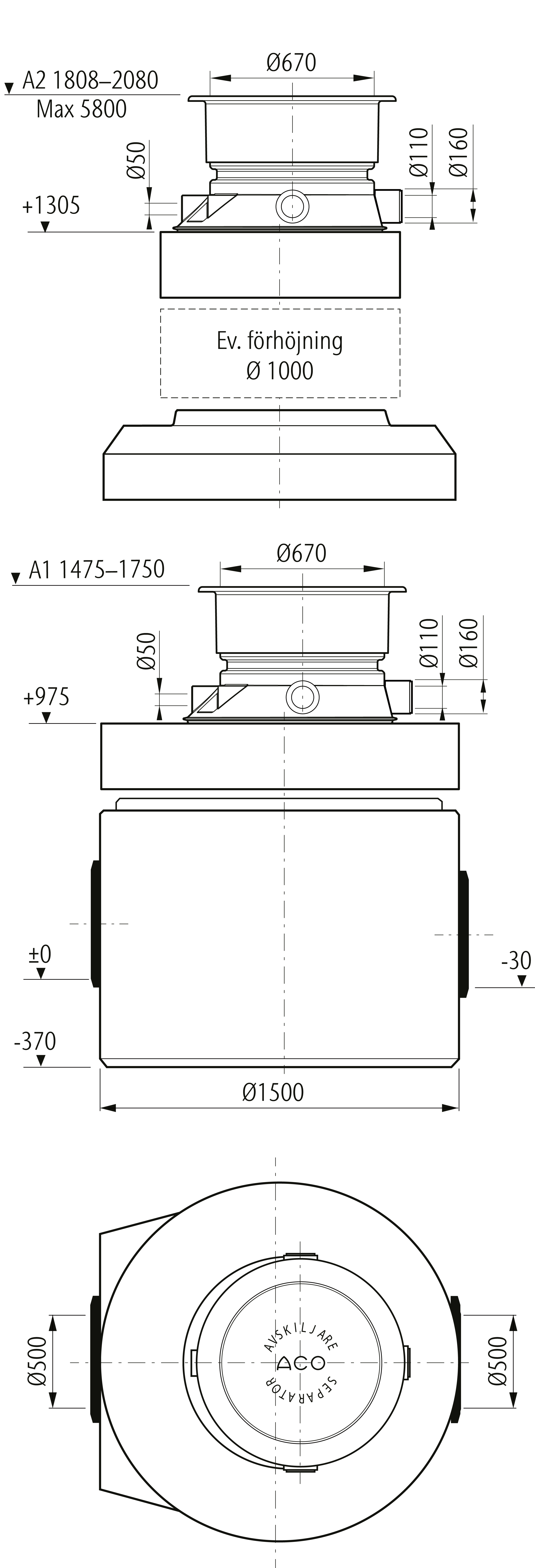 ACO PROWELL C 30-500 A2 PROVTAGNINGSBRUNN DN500