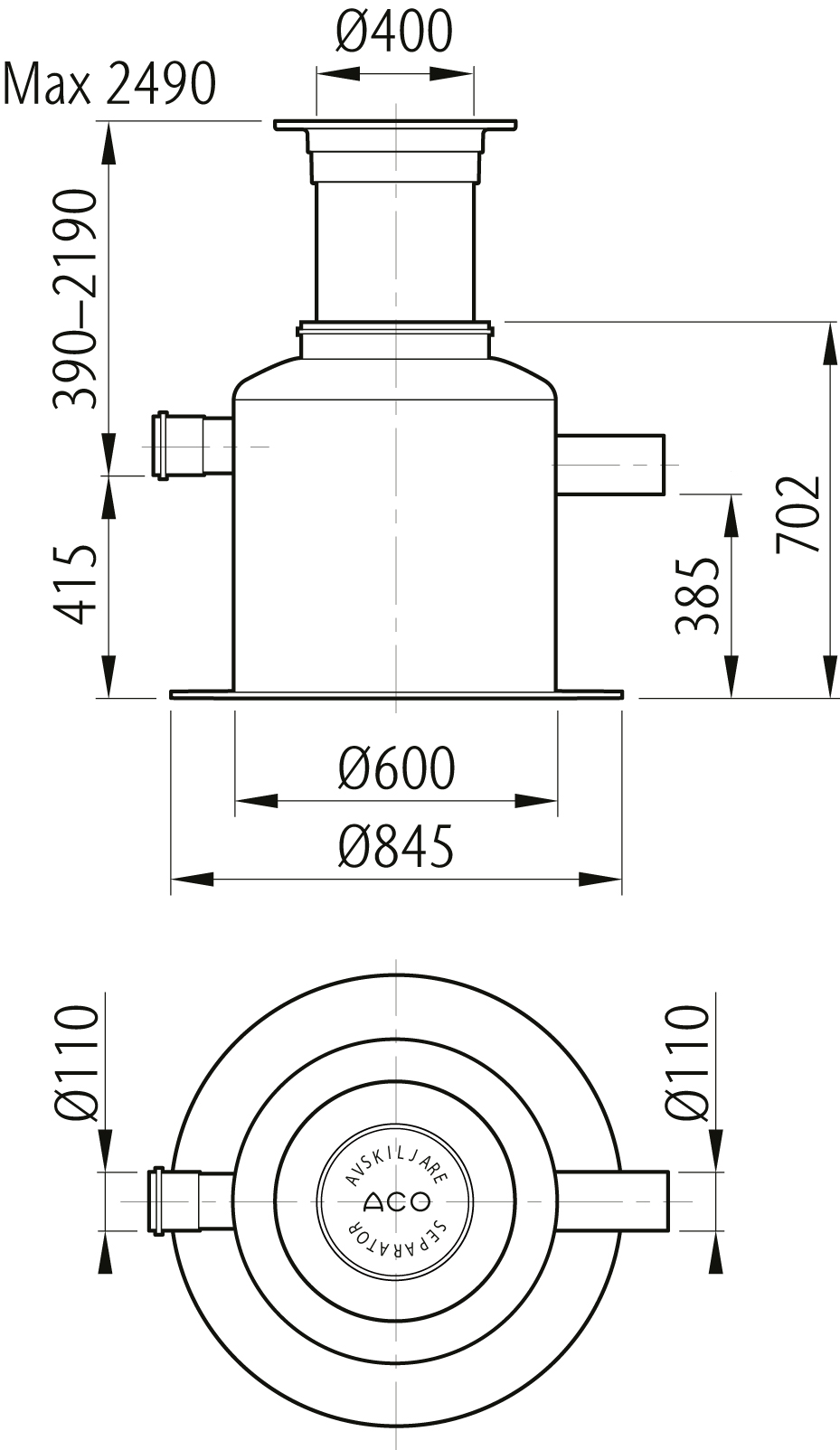 ACO Prowell G är avsedd för provtagning i fristråle efter markförlagda olje- och fettavskiljare eller som tillsyns- och nedstigningsbrunn.