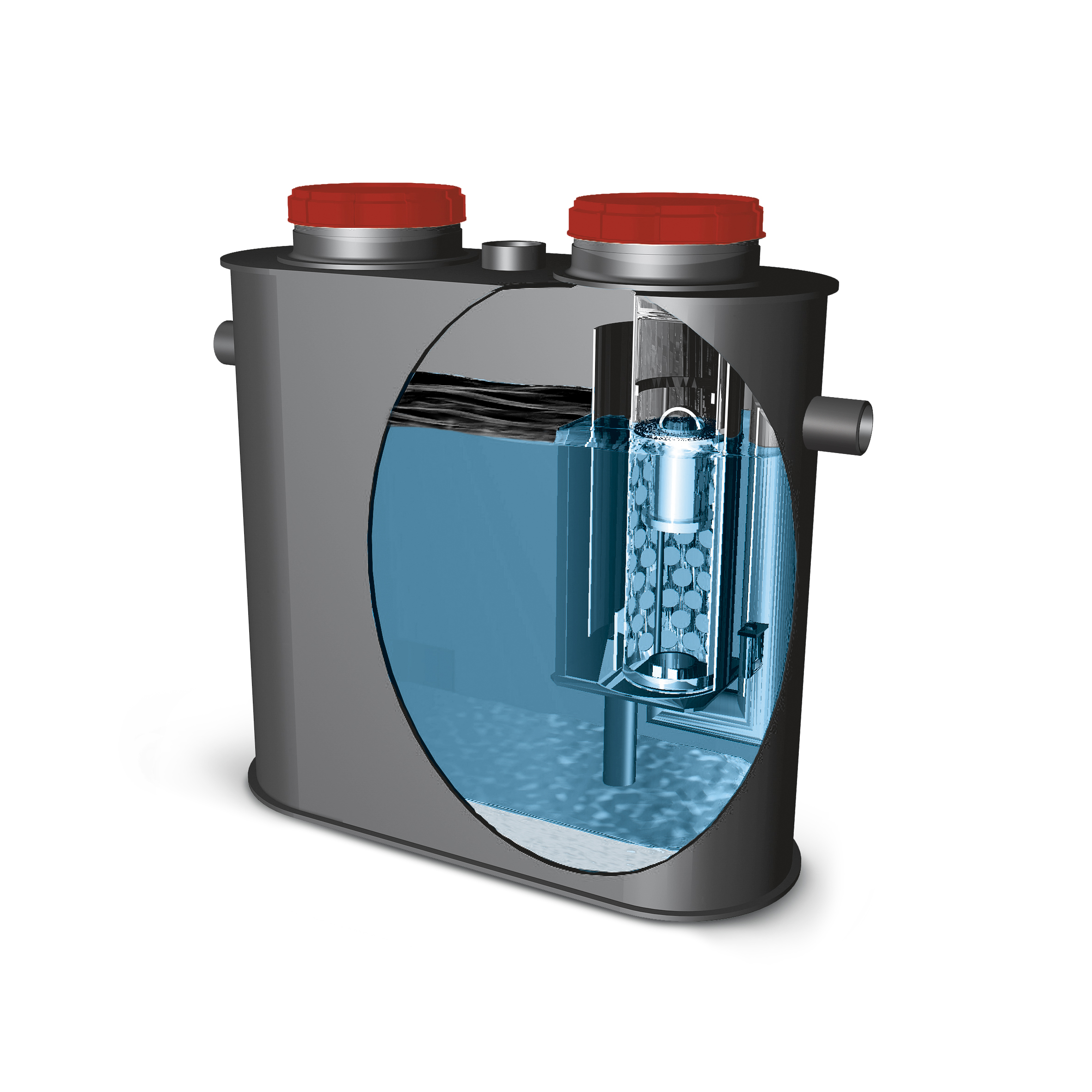 Avskiljarna är utrustade med integrerat slamfång, automatisk avstängningsventil och koalesator, som är lätt uttagbar för rengöring och utbyte. Avskiljarna är försedda med skruvlock Ø 360 mm för inspektion och underhåll.