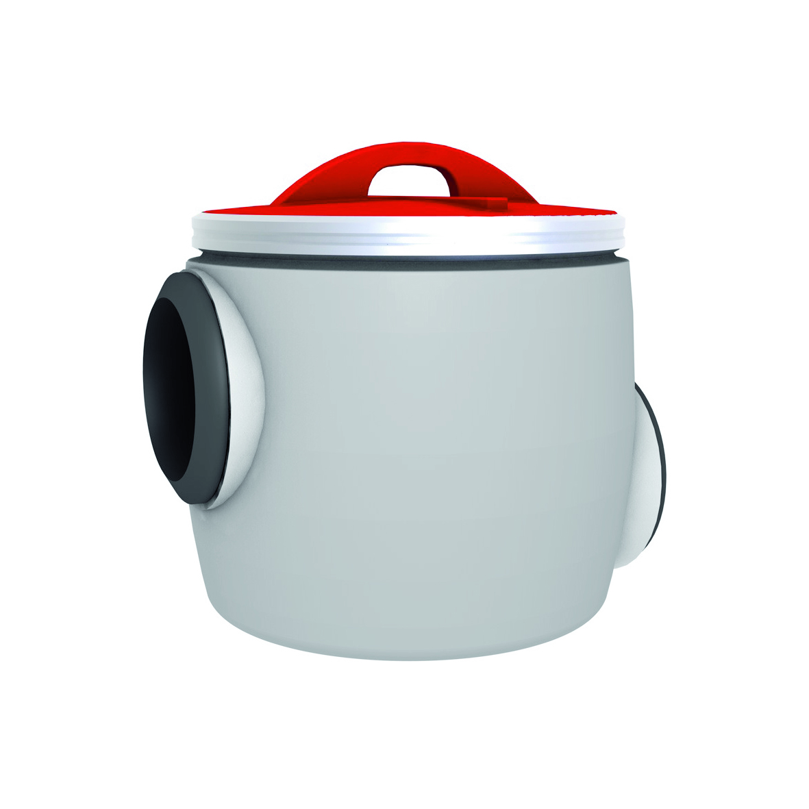 Enheten är tillverkad av polyeten och försedd med tätt lock med snabblås, vilket möjliggör enkel rengöring. Finns i dimensionerna Ø110, Ø160 och Ø200 mm.