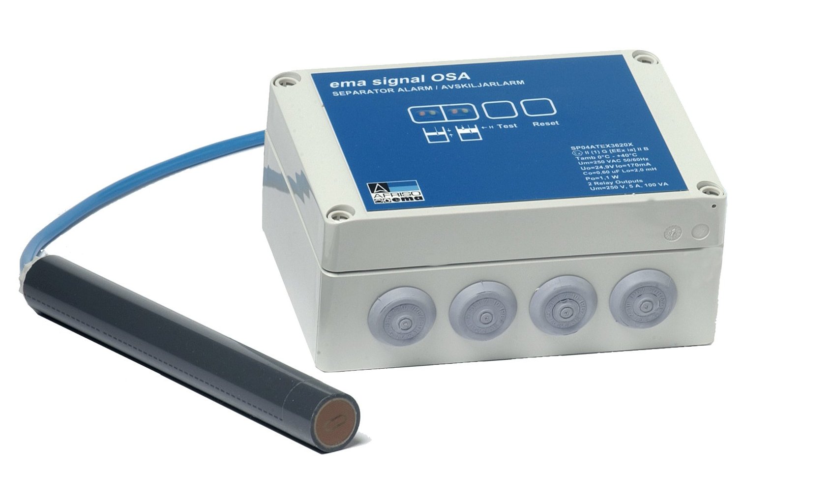 Avskiljarlarm med reläutgång och optiskt larm. Möjlighet att ansluta extra högnivågivare. Lev inkl givare 20 m kabel.