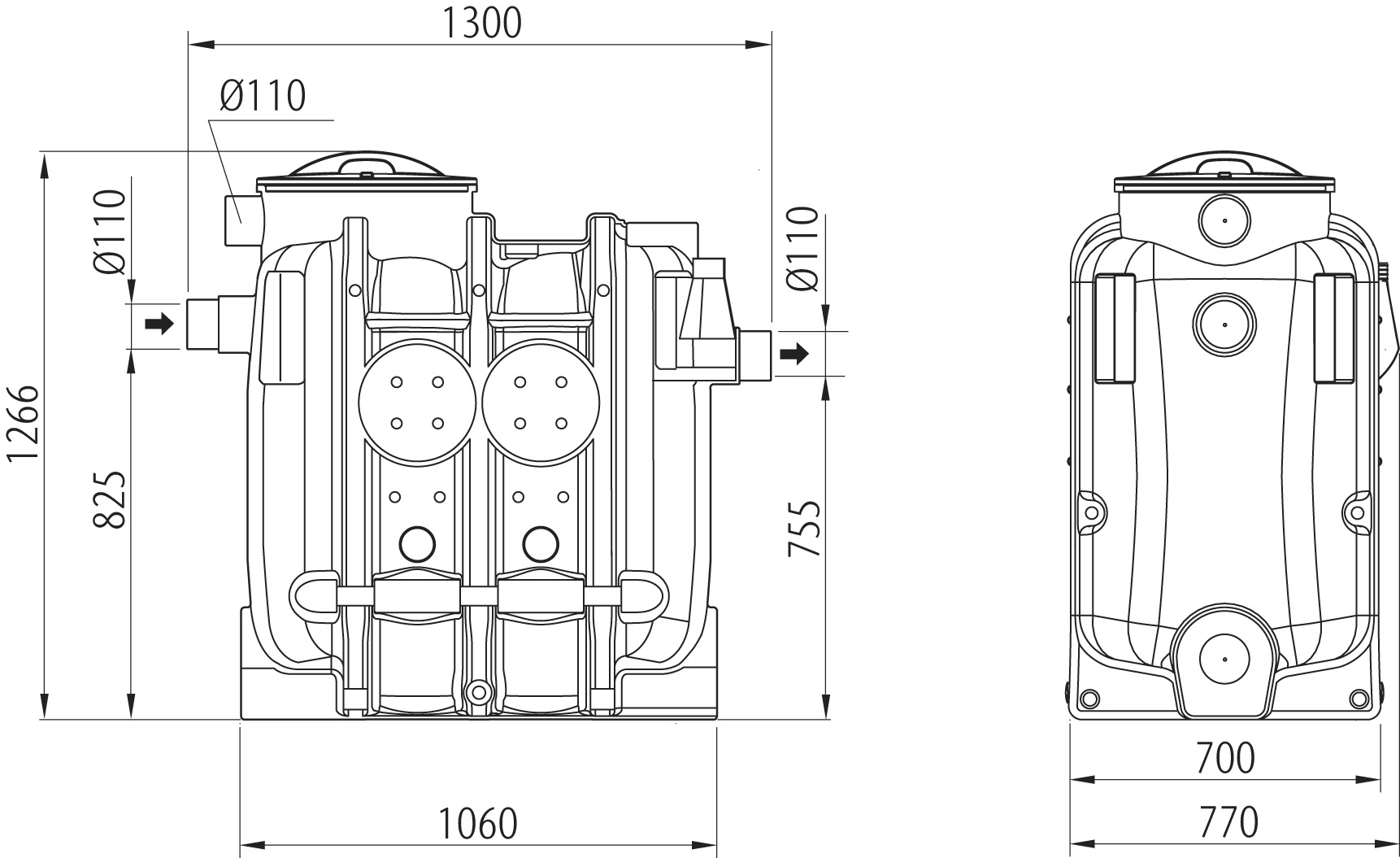 ACO LipuJet P-OB har integrerat slamfång. Små byggmått och låg vikt underlättar installation i trånga utrymmen. Tankens inneryta har blank finish, vilket förenklar rengöringen.