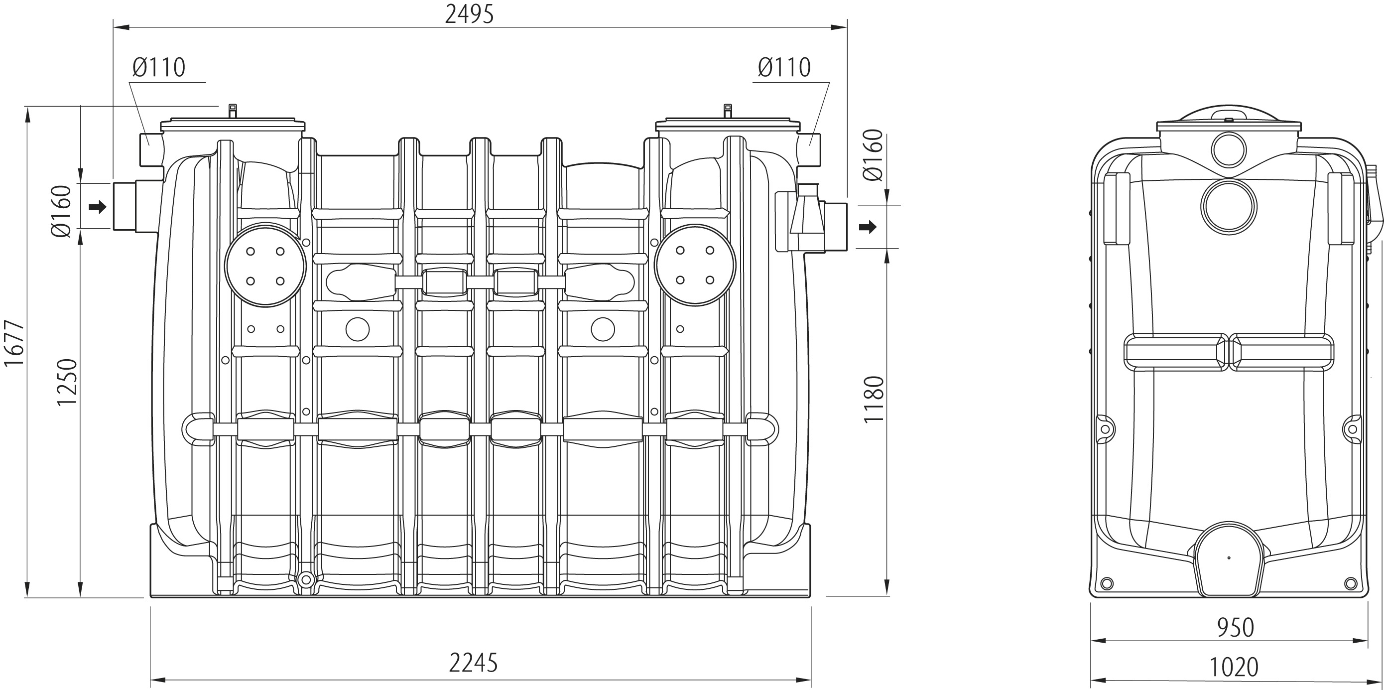 ACO LipuJet P-OB har integrerat slamfång. Små byggmått och låg vikt underlättar installation i trånga utrymmen. Tankens inneryta har blank finish, vilket förenklar rengöringen.