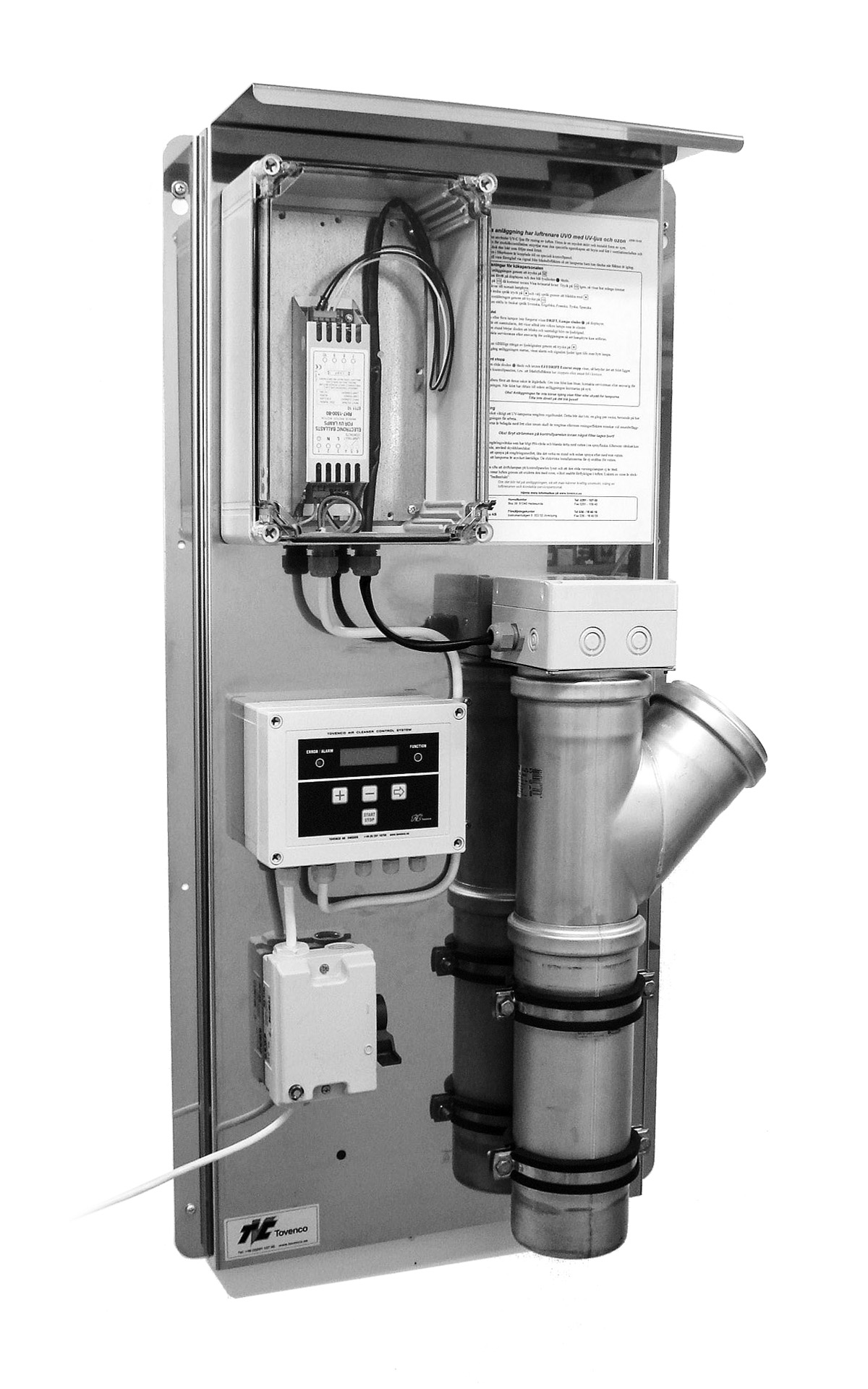 En hjälpprodukt vid luktproblem då luftare från avskiljare inte kan installeras på sedvanligt sätt. Behandling av ventilationsluften sker med UV-ljus. Utförd i rostfritt och levereras med styrskåp.