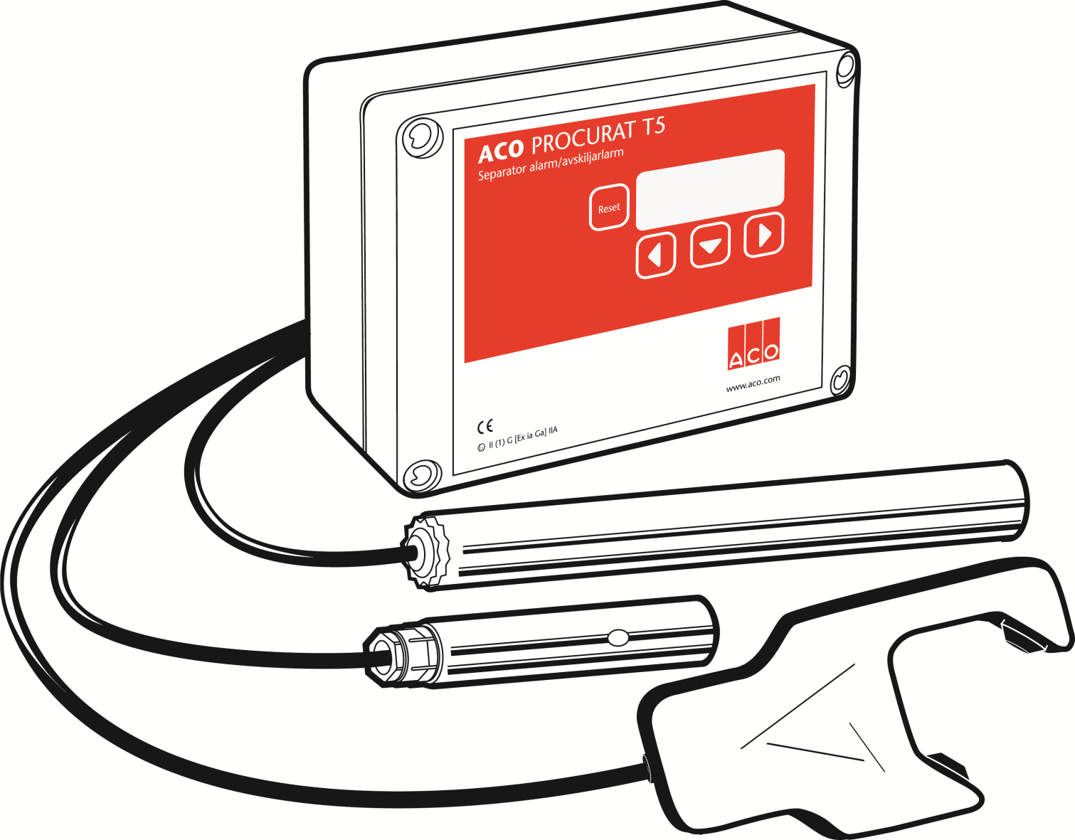 Larm för fett- och oljeavskiljare med tre givare för nivå, dämning och slam.