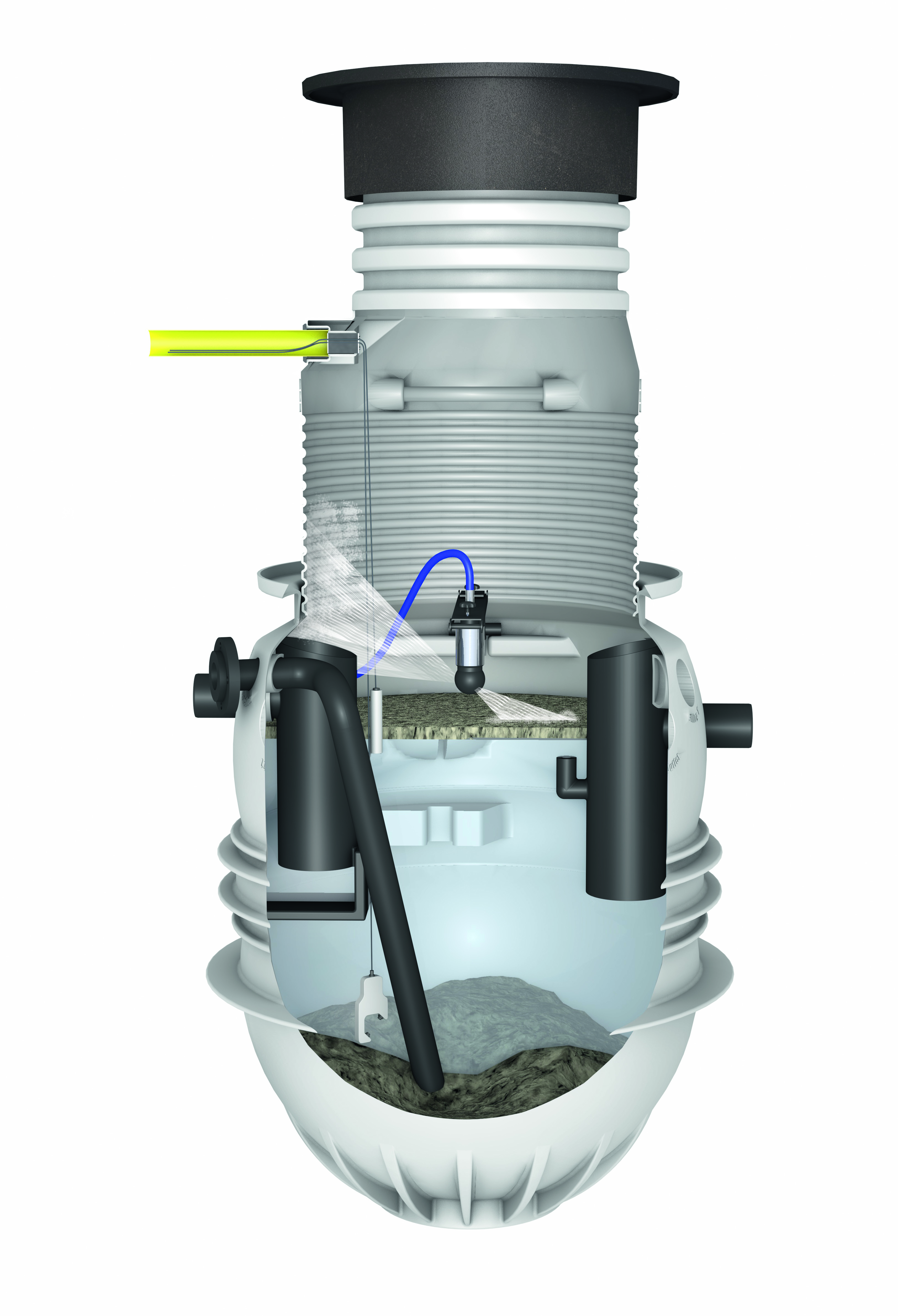 Fettavskiljare med betäckning, tömningsrör, automatisk spolning och hals, A=770–1520 mm
