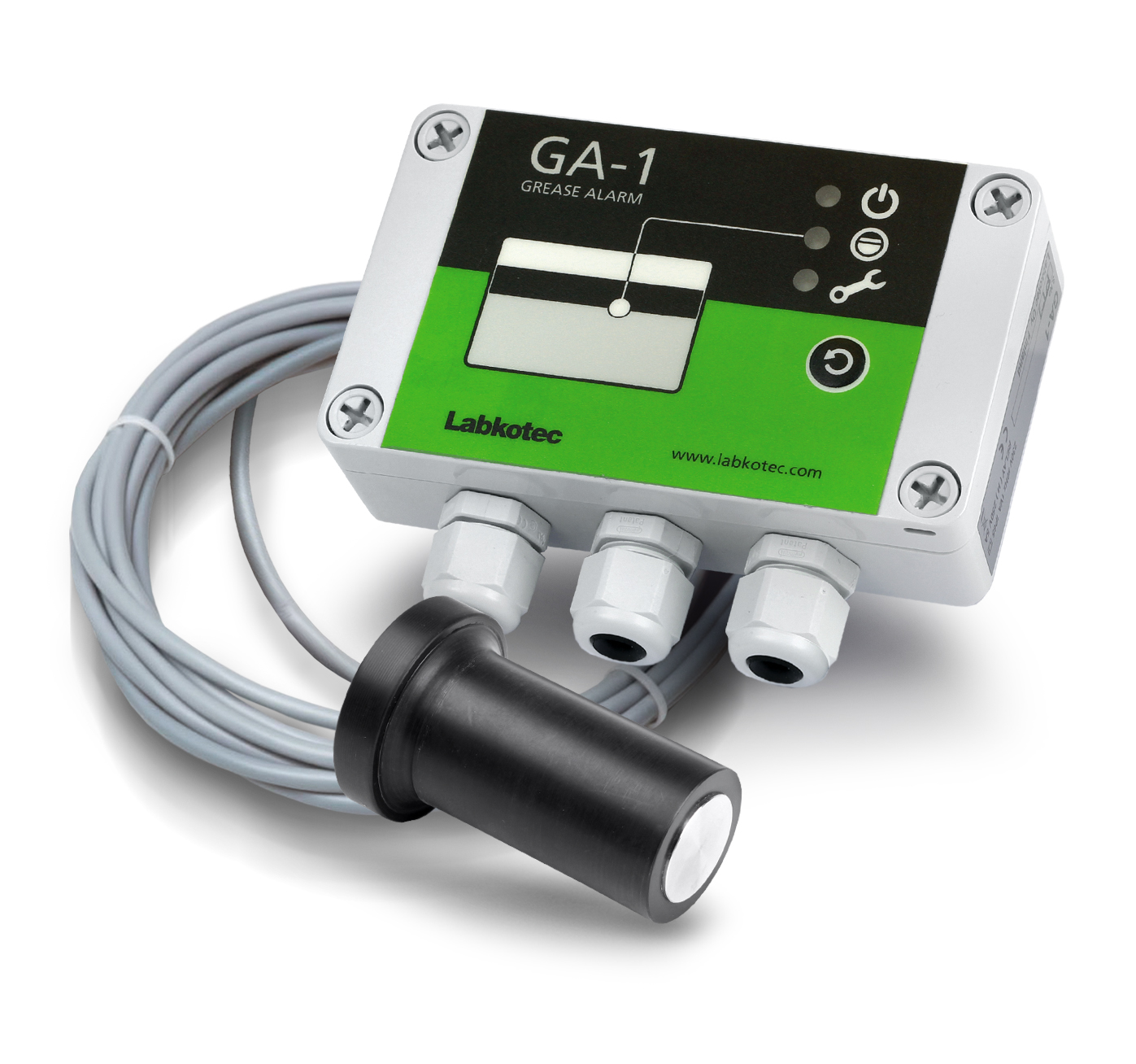 Fettavskiljarlarmen GA-1 en larmanordning som används för att övervaka fettnivån som samlas i en fettavskiljare. Givare tål så hög temperatur som 90 °C.