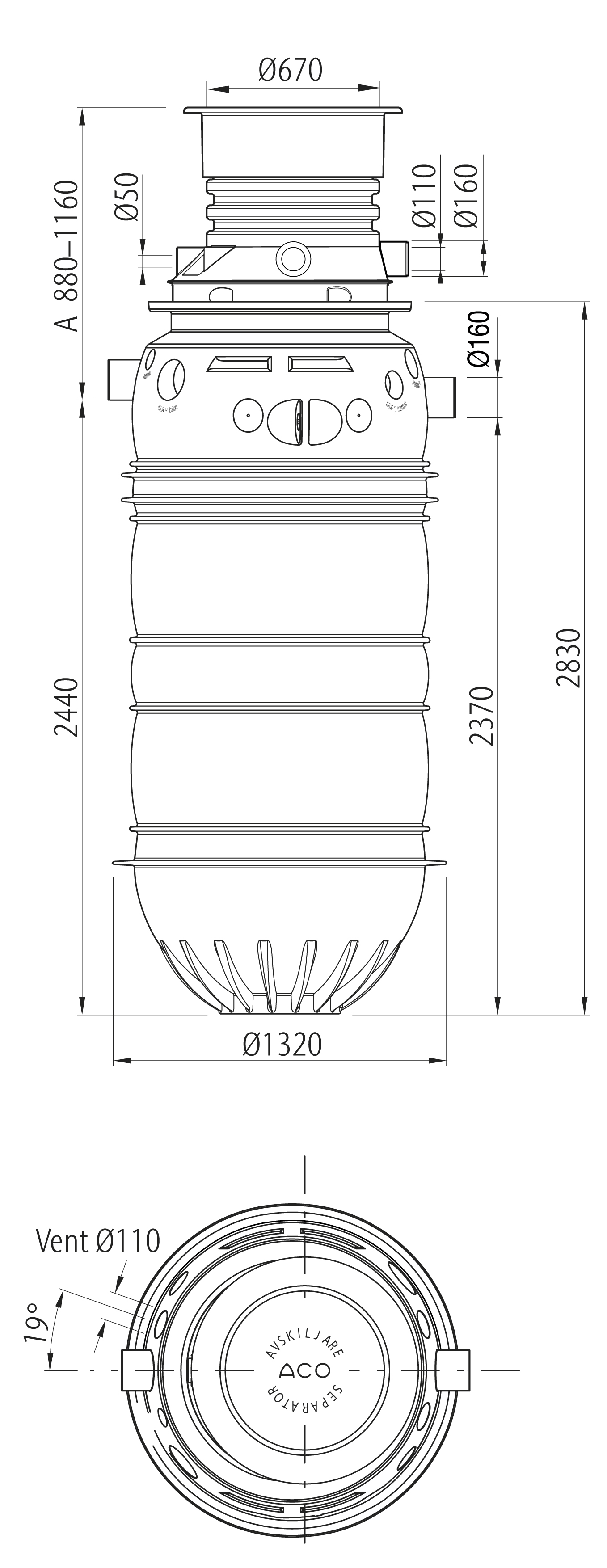 Grundpaket för restaurang och skola, 500 portioner/dag. Fettavskiljaren har en självförankrande konstruktion som utesluter risken för uppflytning vid grundvatten upp till 500 mm under färdig mark. Vid risk för högre grundvatten skall avskiljaren säkras med ett belastningsskydd, ACO Prefab. Tillverkad av PEHD med gummitäningar av NBR och SBR. Komplettera paketet med våra tillval som larm, provtagningsbrunn, belastningskydd m.m. A-mått = 785–1525 mm